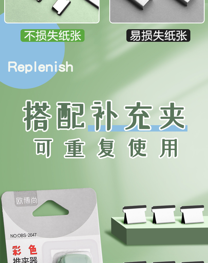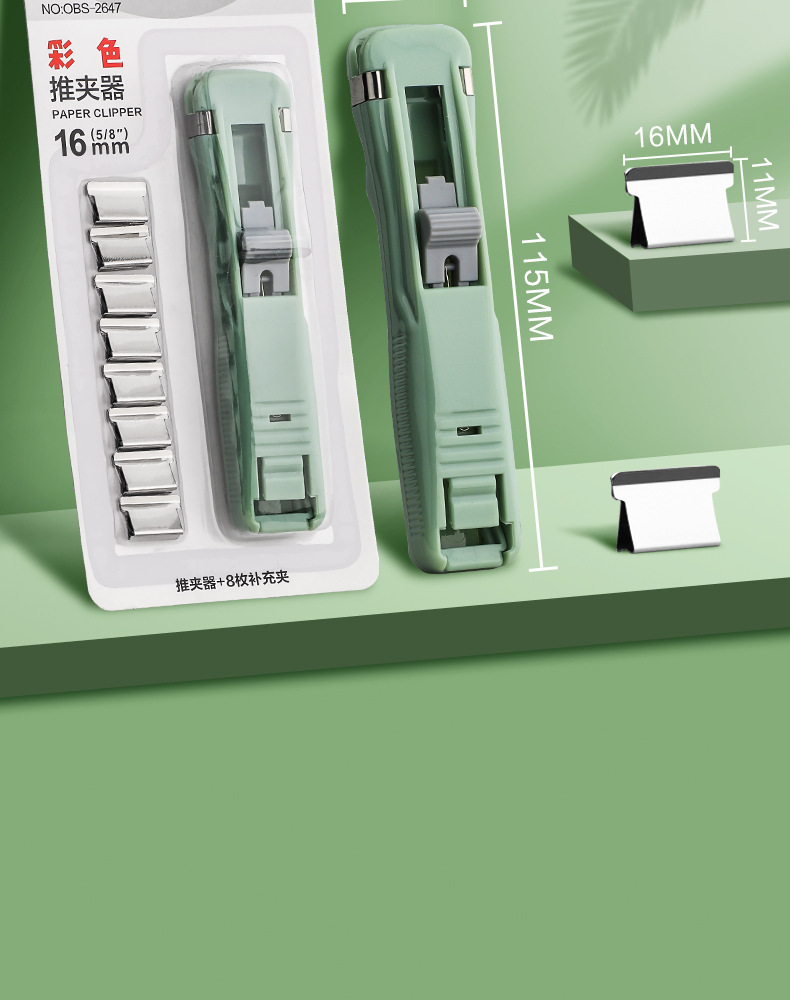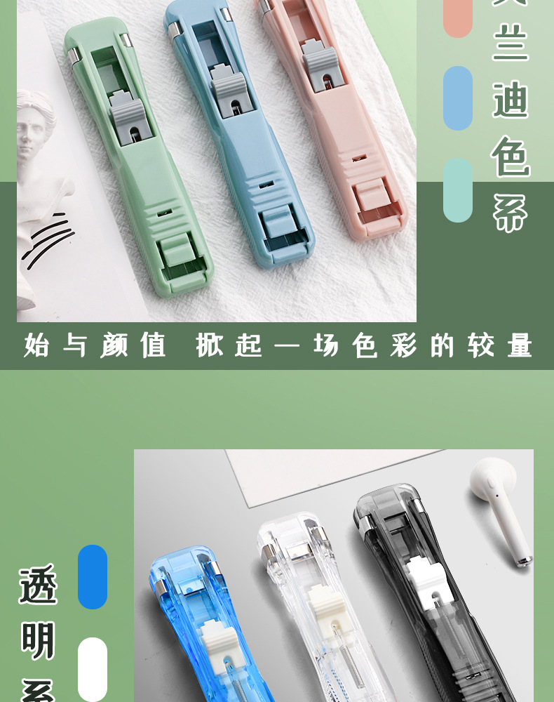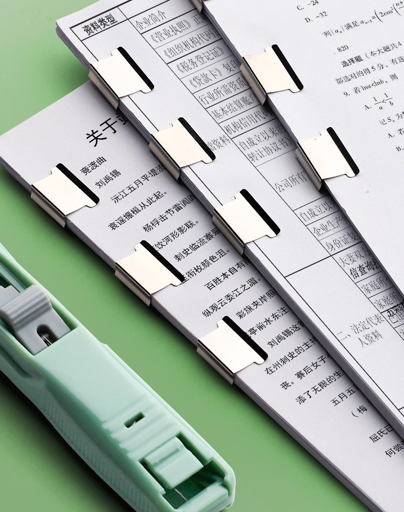 Archivo de empuje de color pequeño clip papelería papel de prueba fijo artefacto grapadora vinculante papel suministros de oficina oro