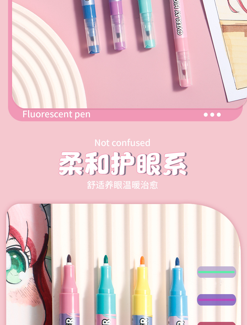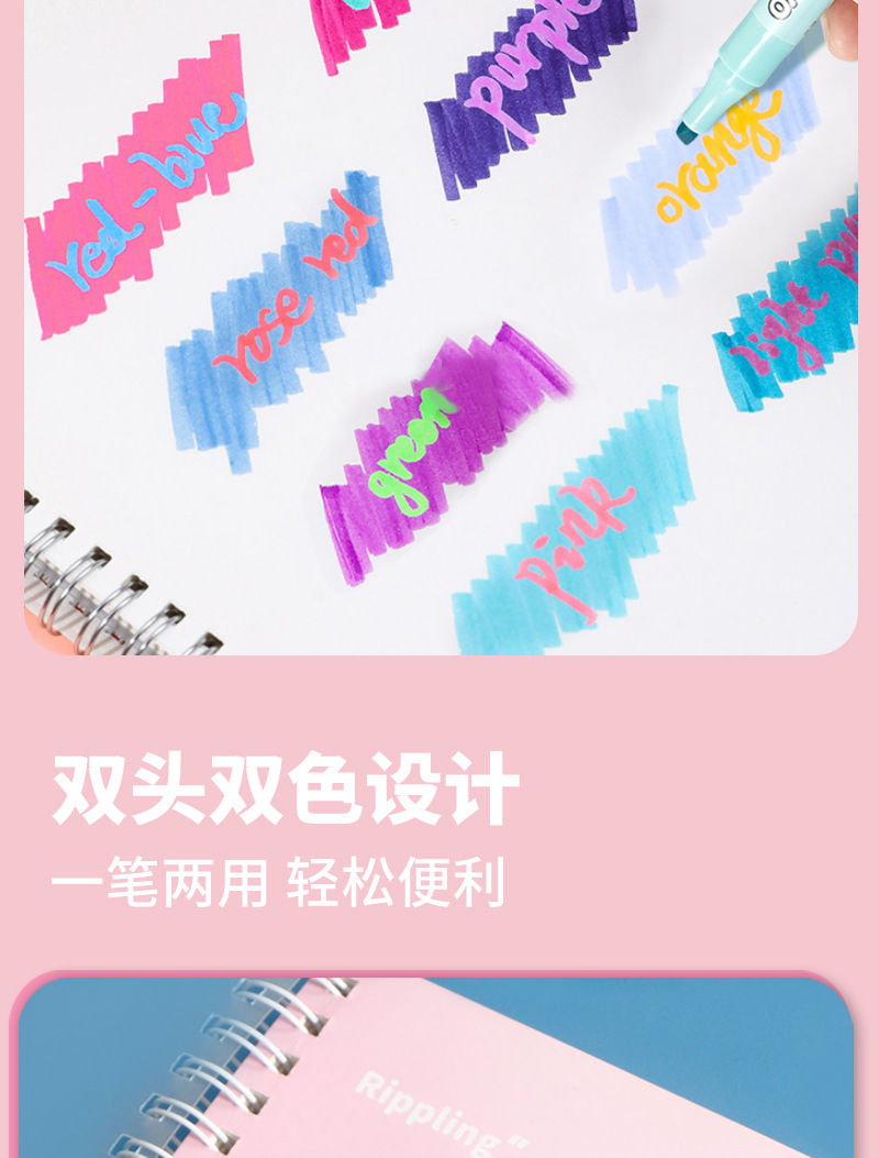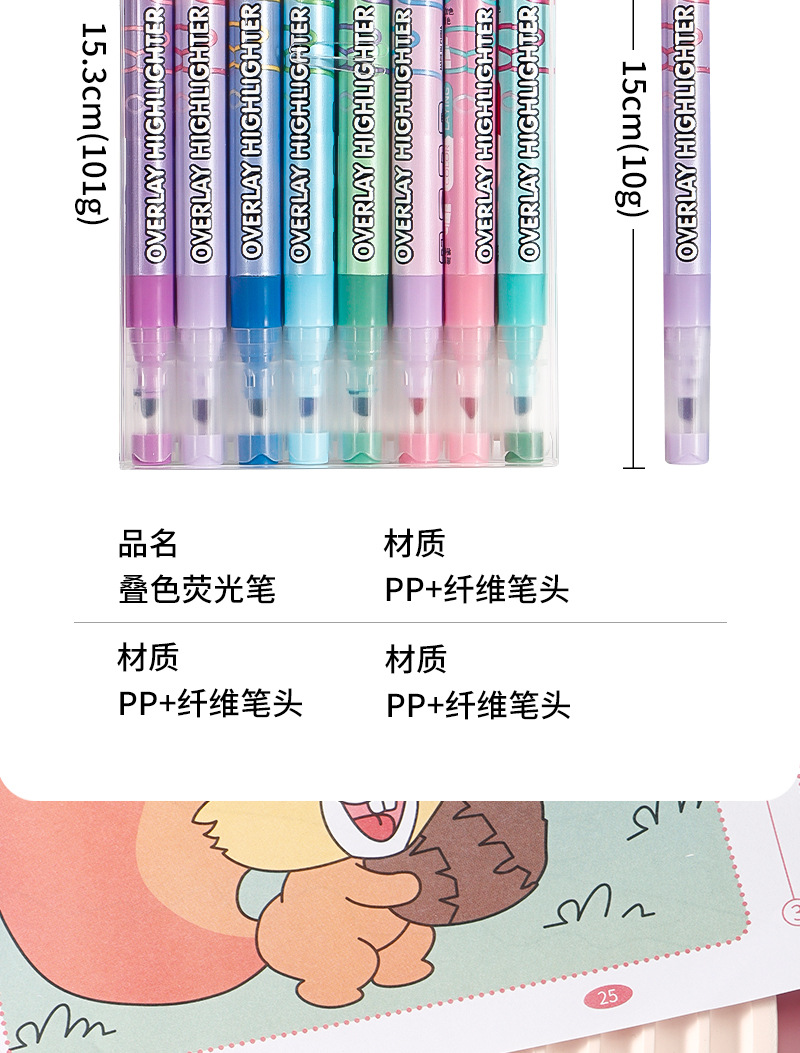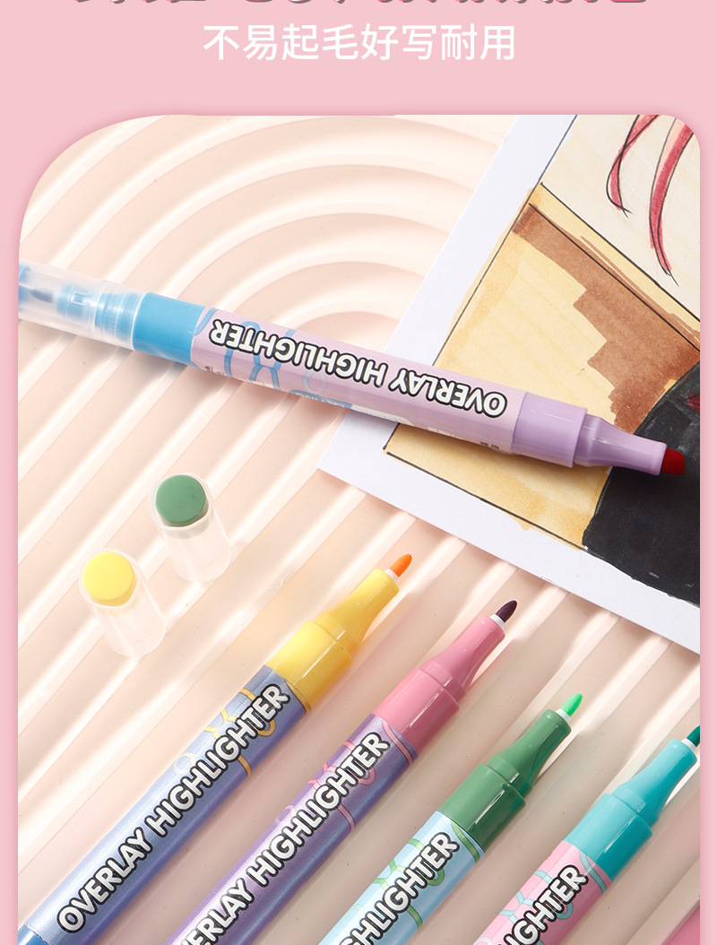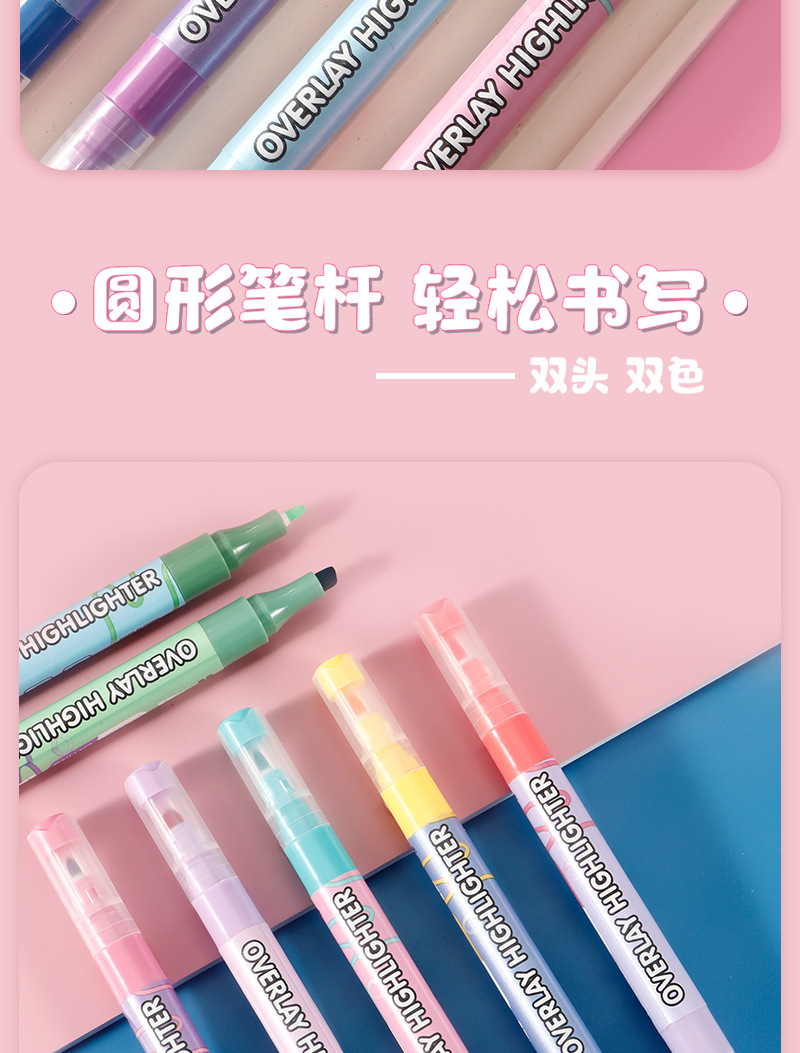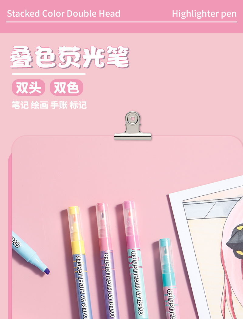 Resaltador de dos colores de dos cabezas, marcador de puntos clave de gran capacidad de 8 colores, bolígrafo de mano para estudiantes, resaltador de color superpuesto
