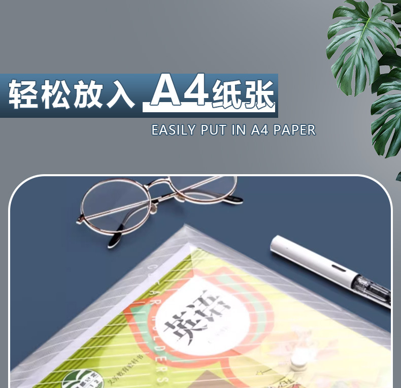 Bolsa de archivo A4 gruesa Bolsa de plástico transparente de gran capacidad a presión Bolsa de almacenamiento de papel de prueba Bolsa de archivo para estudiantes Bolsa de información