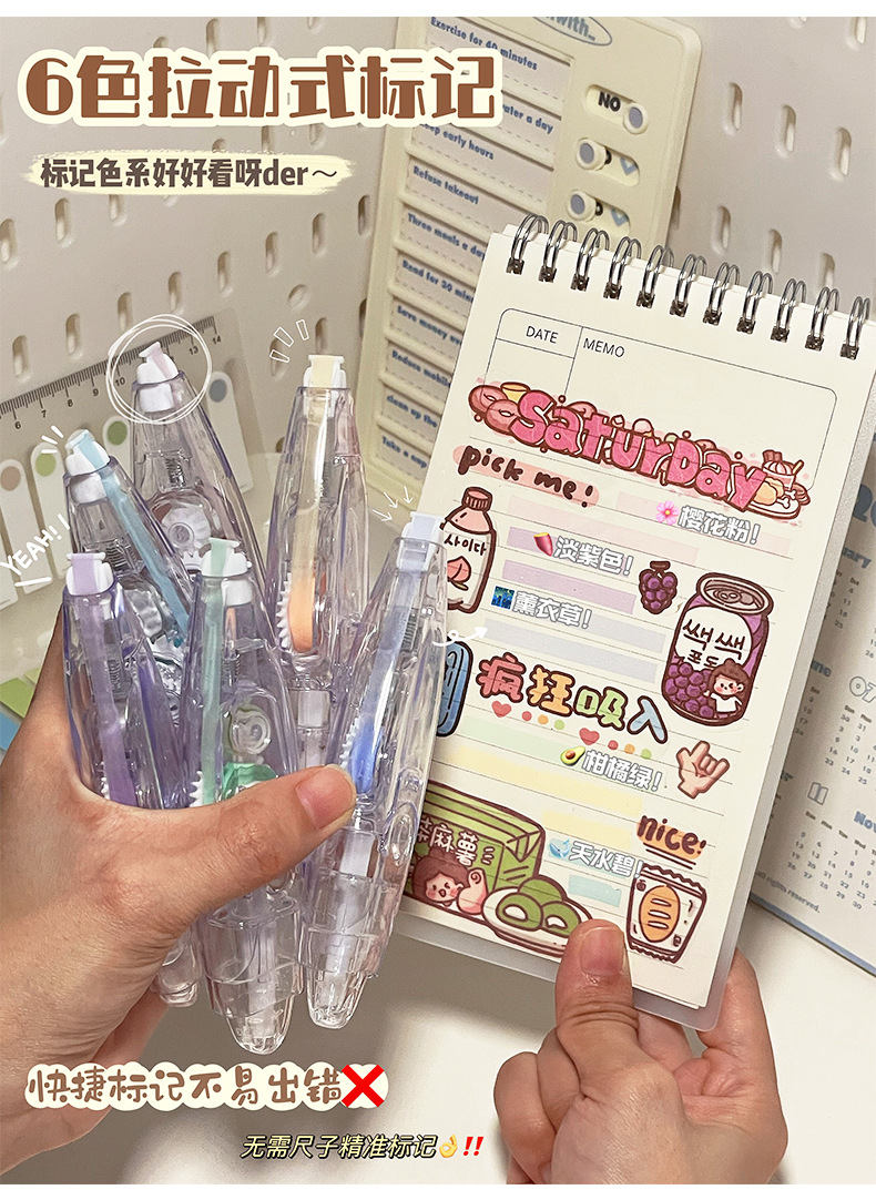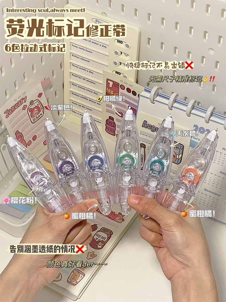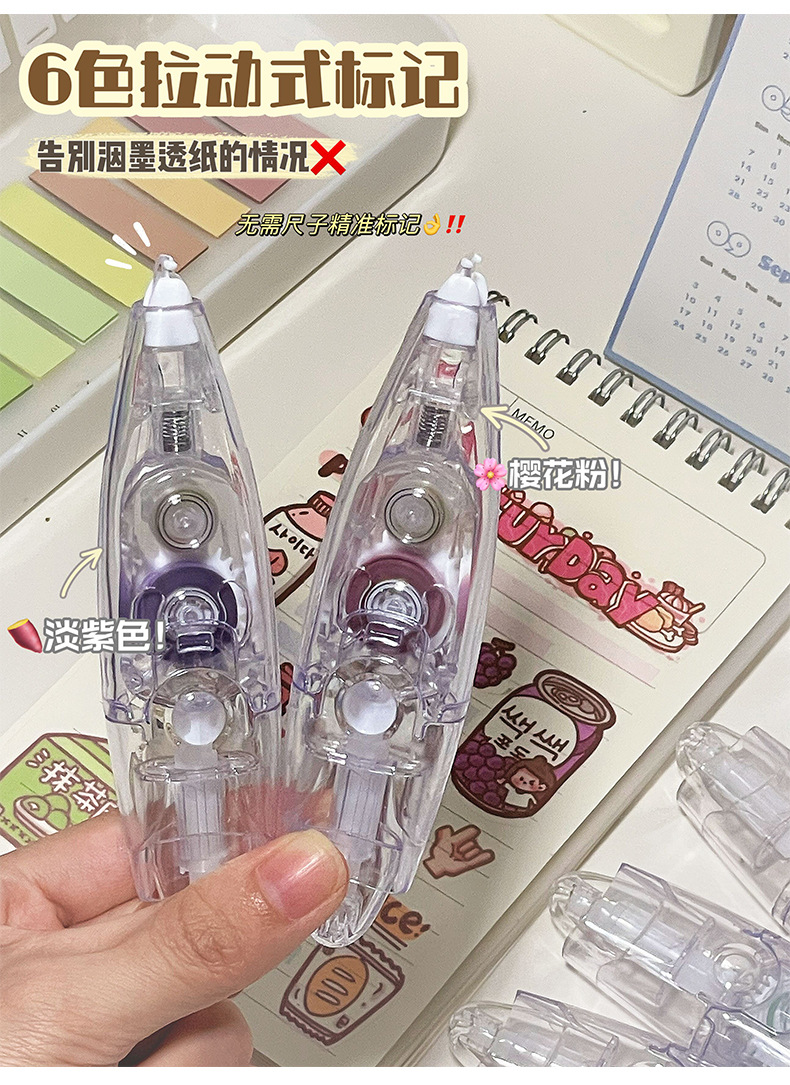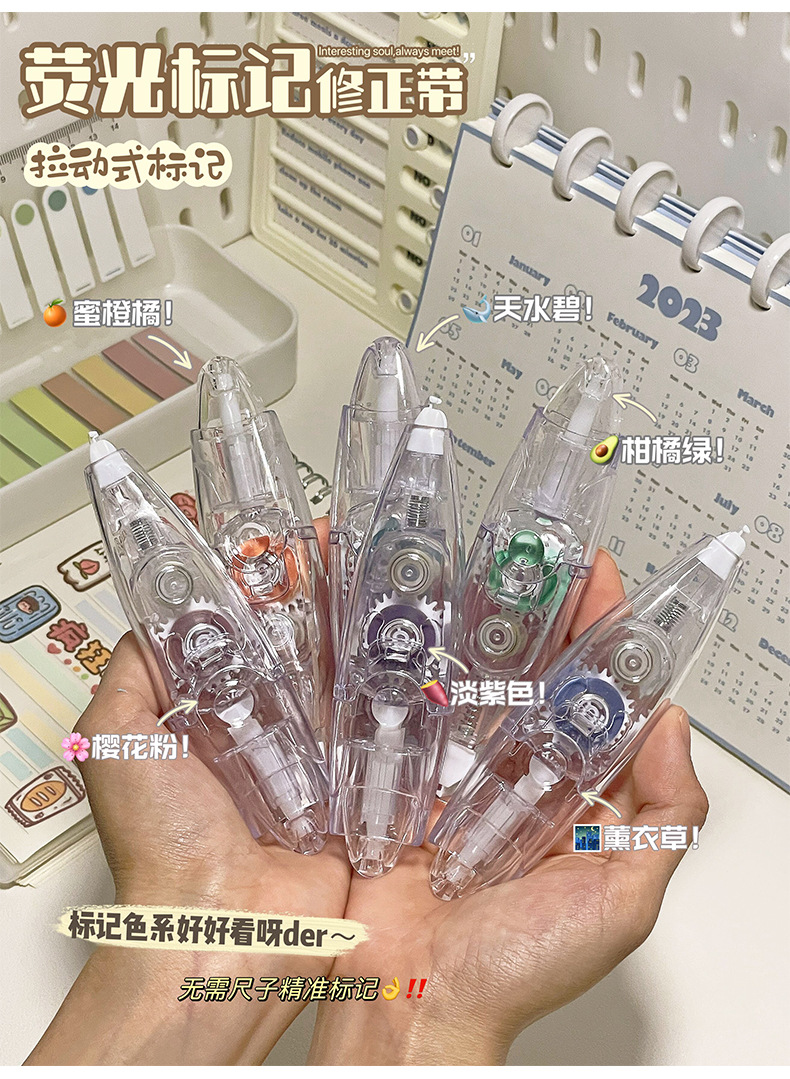 Xiaohongshu mismo estilo cinta de corrección de empuje cinta de corrección de color de gran capacidad Diario del estudiante cinta de corrección de aspecto alto transparente
