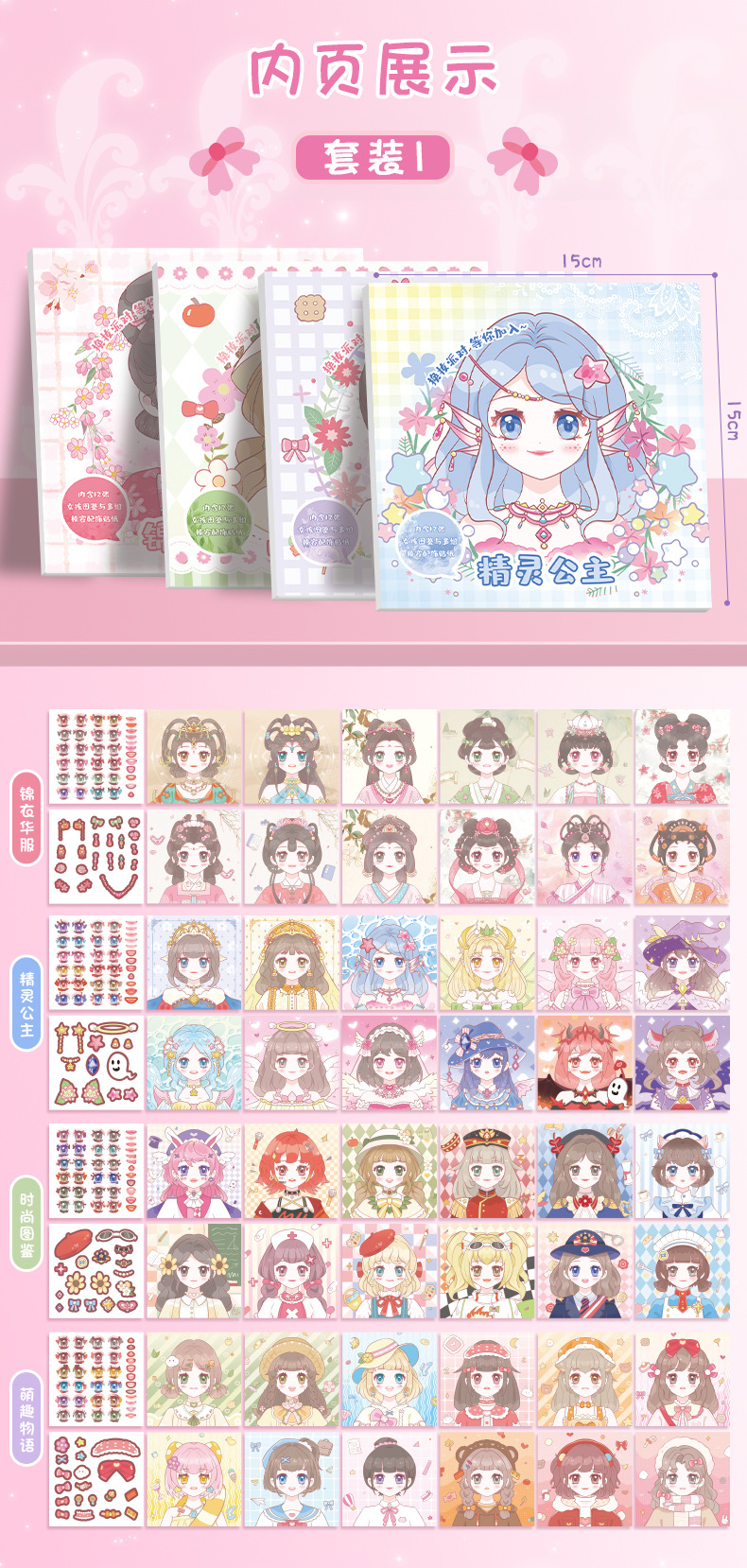 | Color | [Princess Dress Show] 1 conjunto de 4 libros (un total de 48 fotos de apreciación de chicas + 8 pegatinas) |