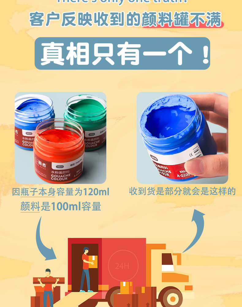 Botella individual 100mL traje de pintura gouache especial para estudiantes de arte 12 colores 18 colores 24 colores botella grande pintura publicitaria color de agua
