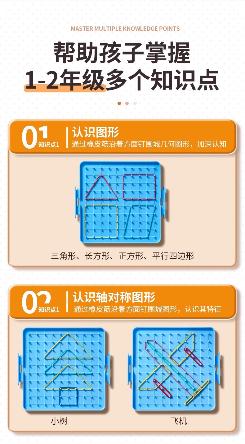 Tablero de clavos, primer grado, segundo grado, tablero de clavos de plástico, escuela primaria, comprensión de las matemáticas, gráficos geométricos, tablero de aprendizaje de doble cara, herramientas de aprendizaje