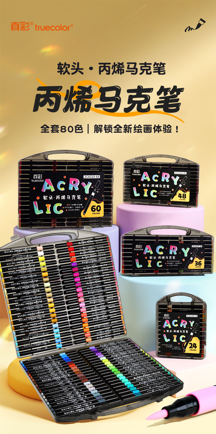Bolígrafo acrílico de cabeza suave de color verdadero, pincel de arte para niños, periódico escrito a mano para estudiantes, papel impermeable, color apilable, caja negra, bolígrafo de color