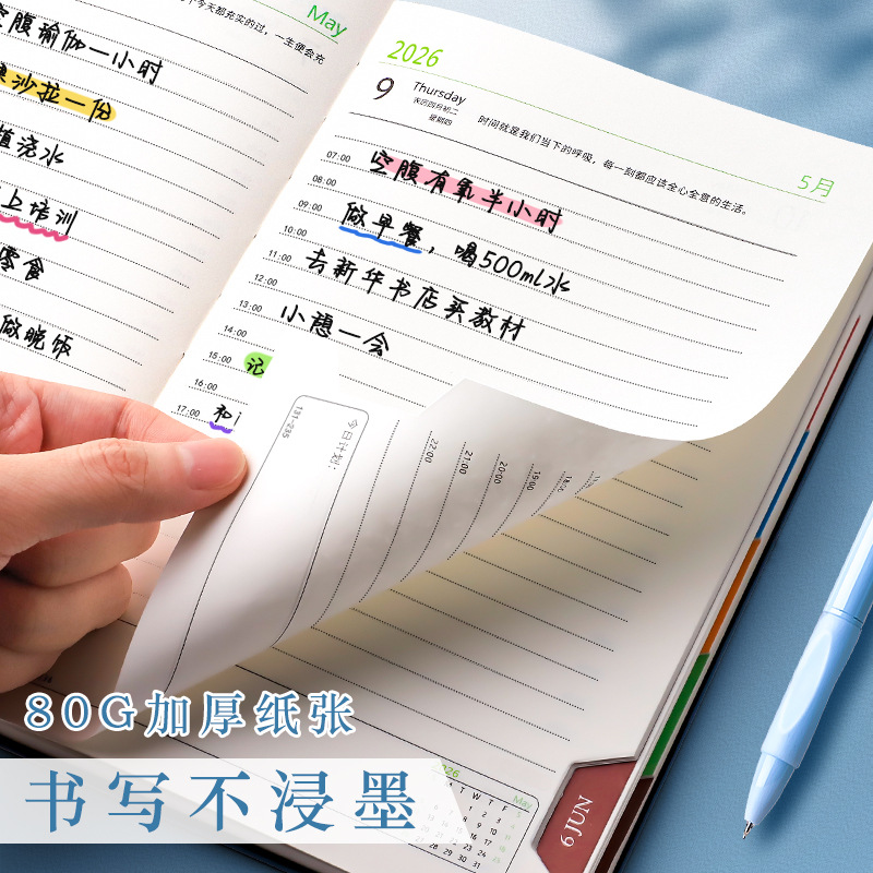Agenda 2026 Cuaderno de notas Plan diario Cuaderno de notas Calendario Manual de tarjetas perforadas Gestión de eficiencia Autodisciplina