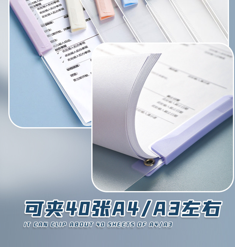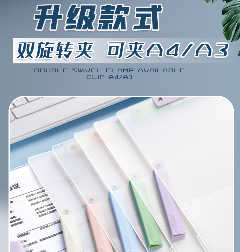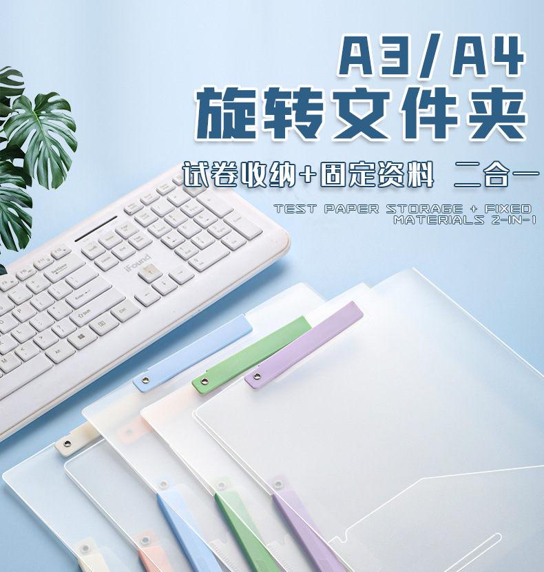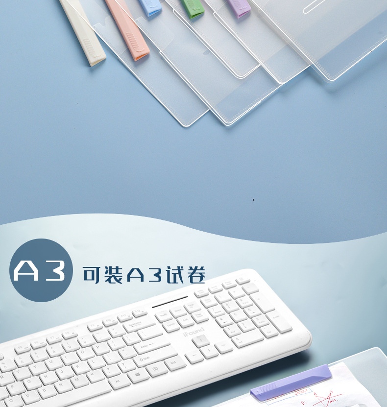 A3 clip de trolley doble tipo de bolsa de inserción clip de papel de prueba clip de trolley clip de acabado bolsa de almacenamiento bolsa de archivo de carpeta giratoria para estudiantes
