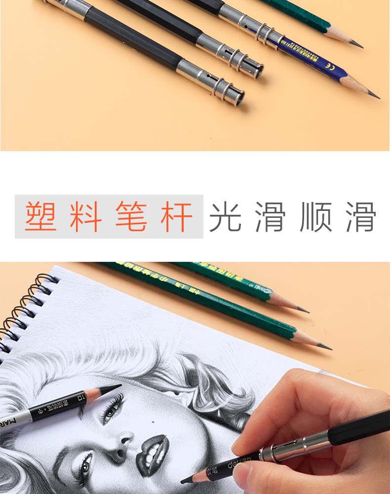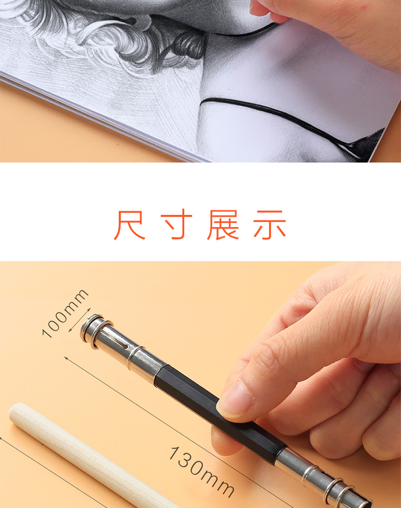 Lápiz extensor de cabeza boceto lápiz titular de la pluma arte estudiante alargado titular de la pluma cepillo corto ceja lápiz carbón titular de la pluma