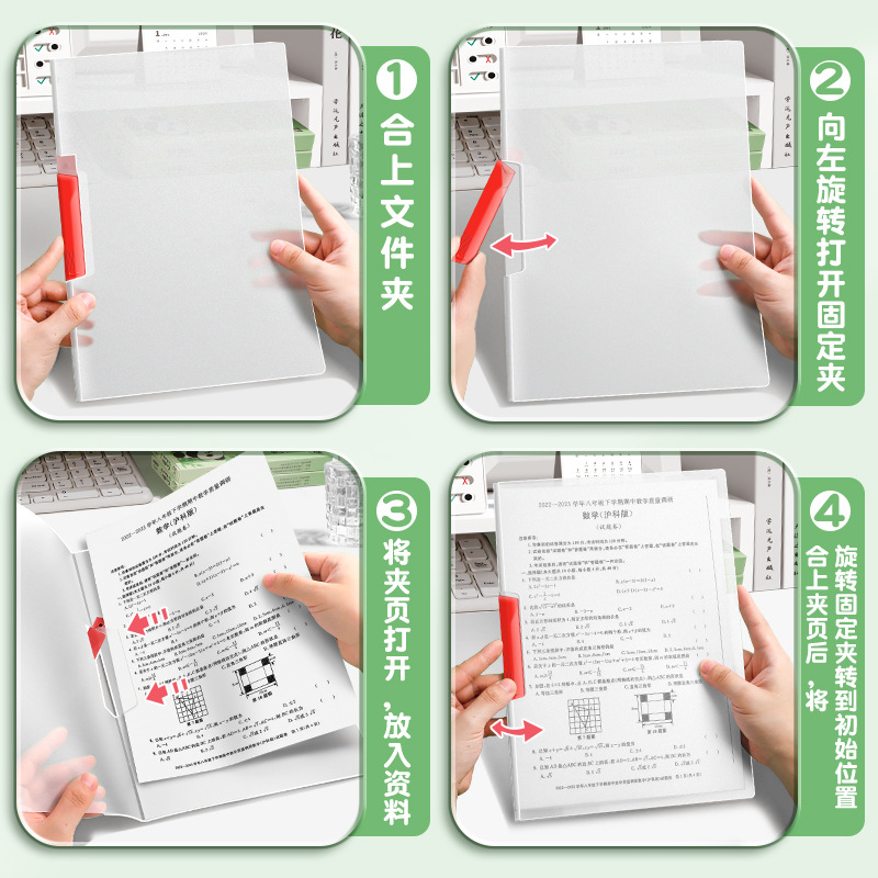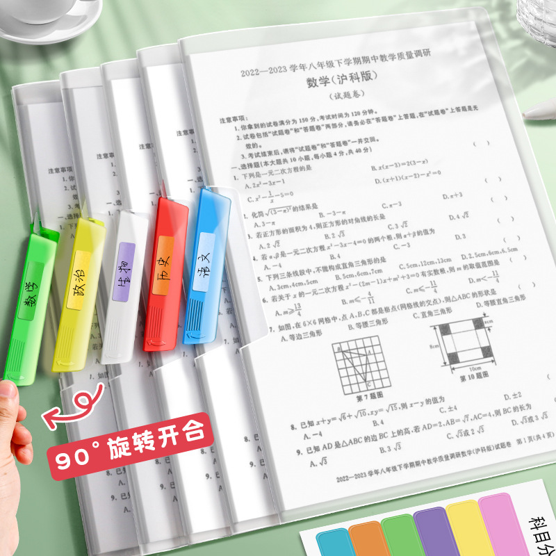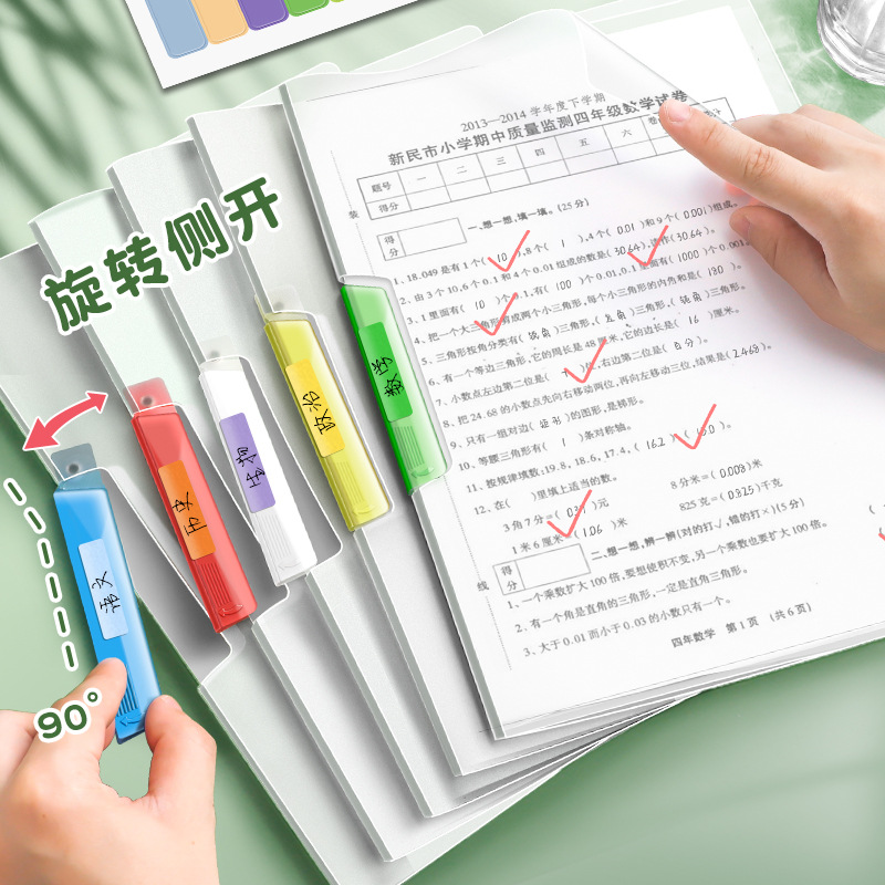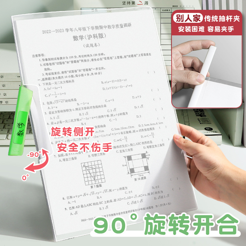 A4 carpeta rotativa de abrazadera de varilla de tracción bolsa de papel de prueba de inserción transparente carpeta de datos especial para estudiantes de secundaria