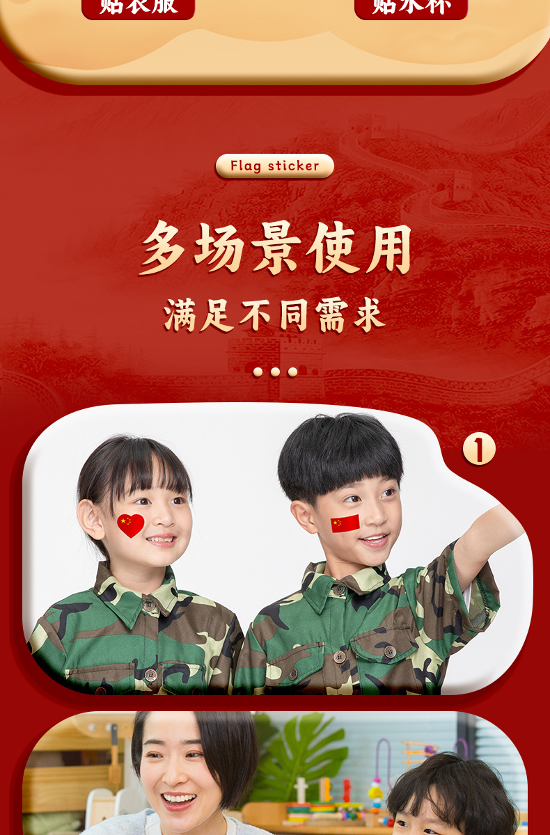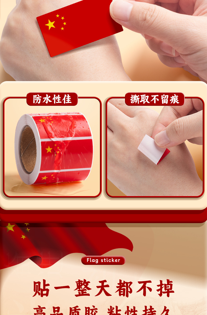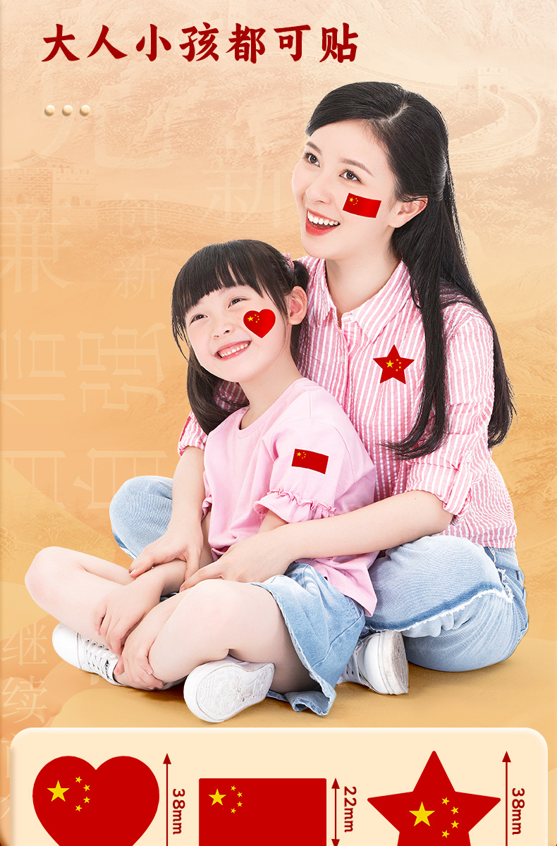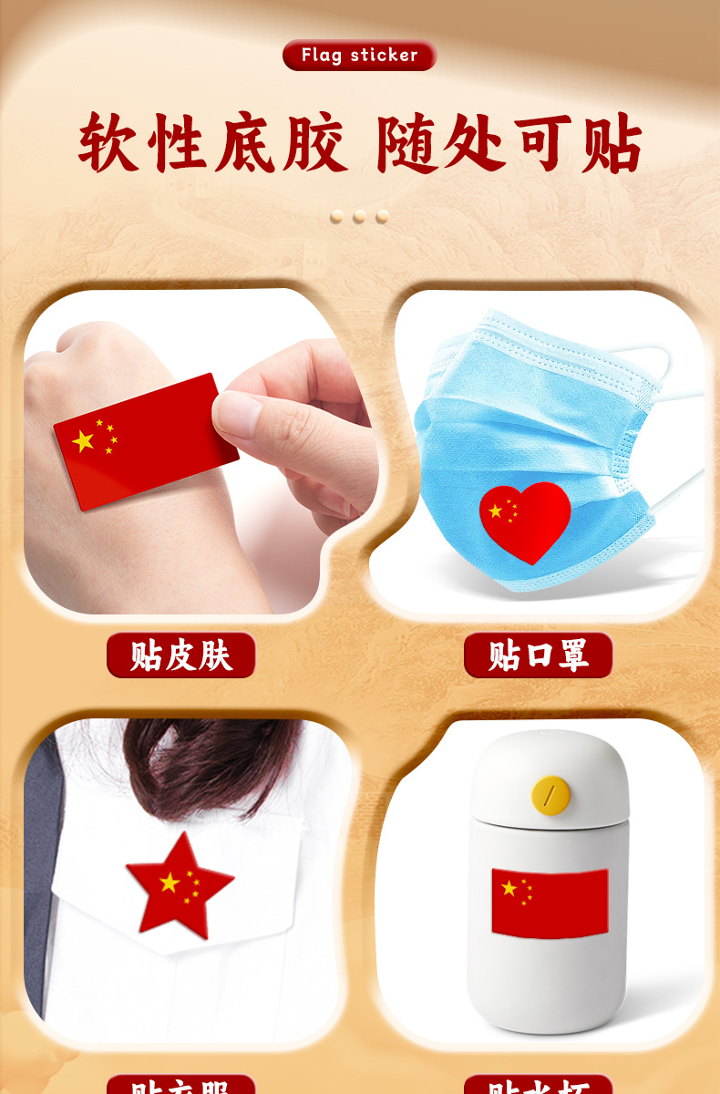 Pegatinas de Bandera Roja pegatinas de bandera pequeña pegatinas de cara para niños pegatinas impermeables pegatinas de bandera roja de cinco estrellas estudiantes de primaria Día Nacional Chino