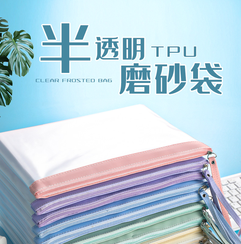 Bolsa de archivo engrosada, bolsa transparente con cremallera, papel de prueba de TPU impermeable de gran capacidad, bolsa de datos de archivo, suministros de oficina