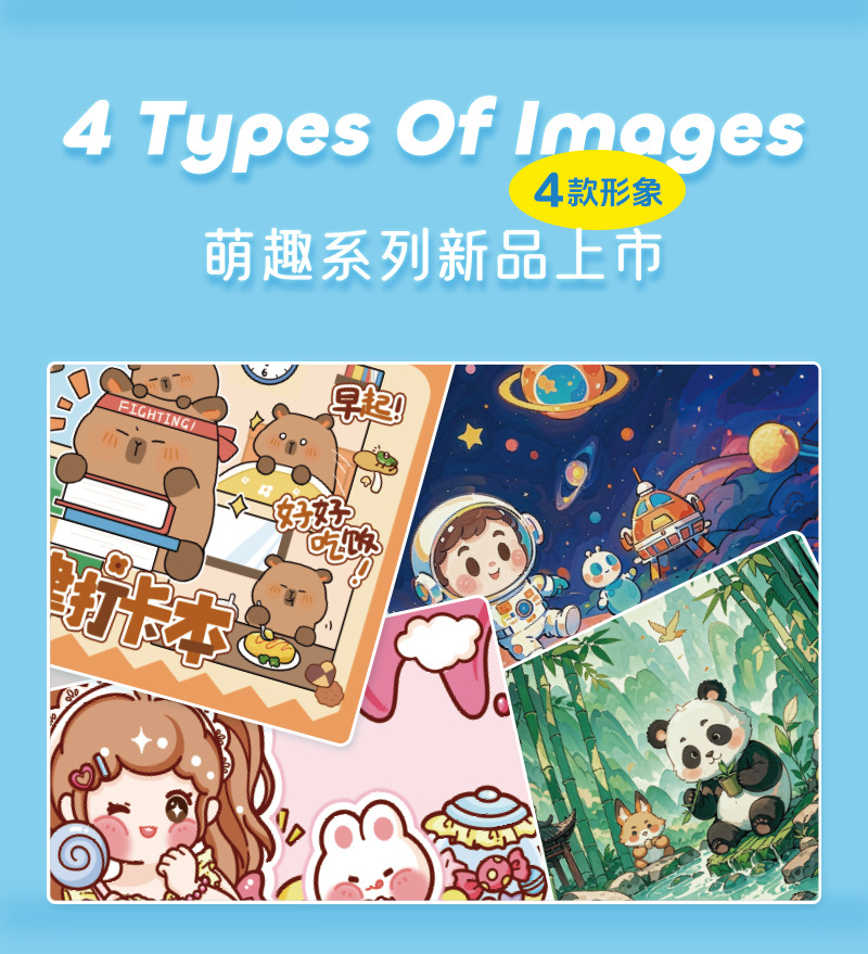 | Colores de la cubierta | Compañero Xiaoman,Panda gordo,Astronauta,Kapibala |