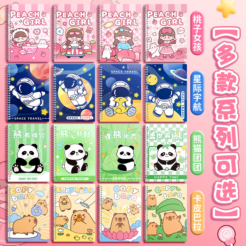 Cuaderno de notas de bobina b5 de color real simple en espiral de viento lindo dibujo animado a5 libro panda capibara