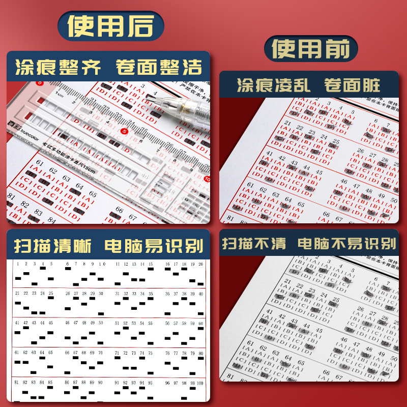 Regla de respuesta de color verdadero, calibrador de recubrimiento, tarjeta de respuesta especial para el examen, calibrador de lectura de máquina, regla de examen público, regla de recubrimiento, regla