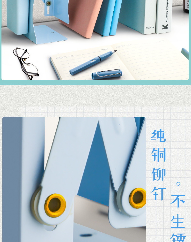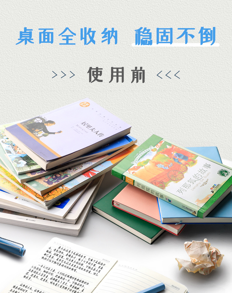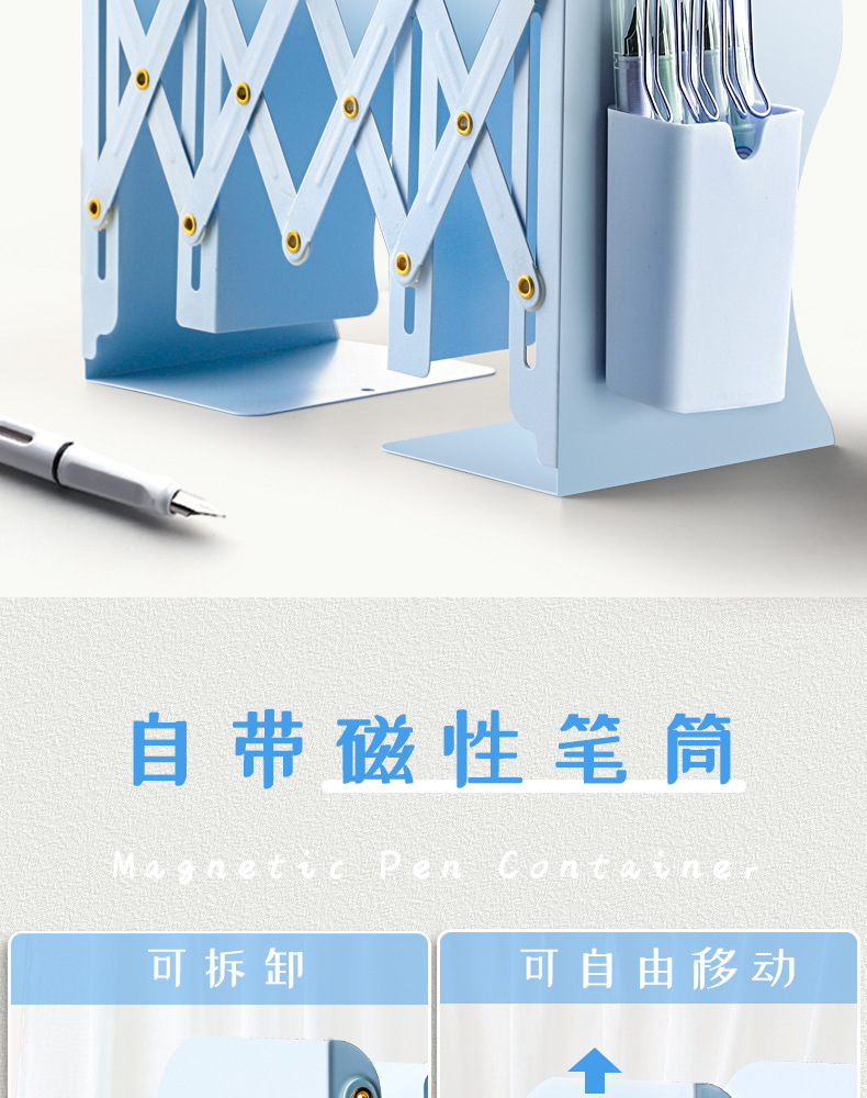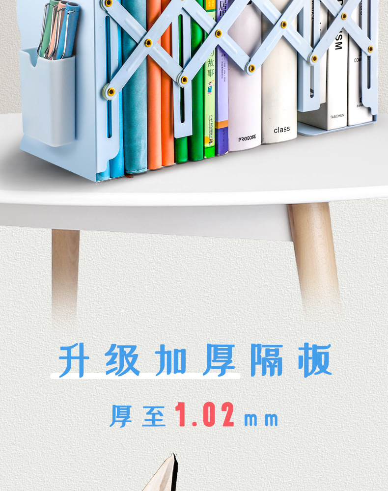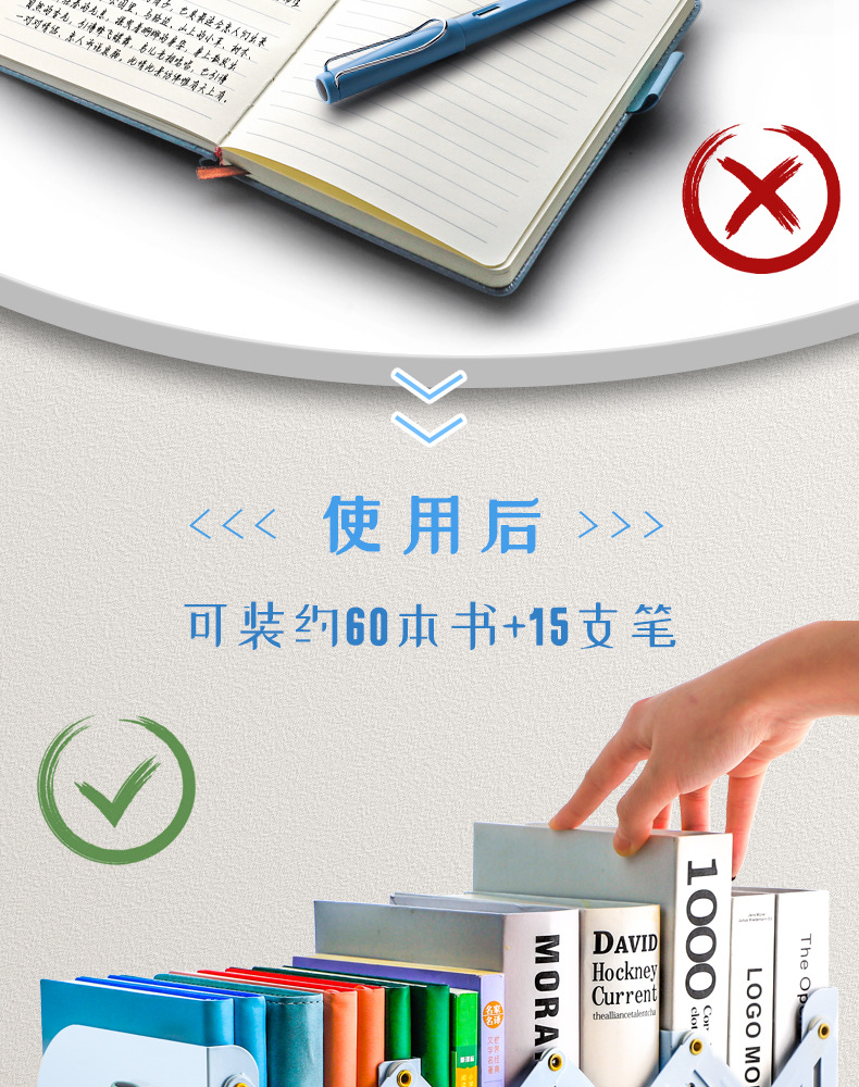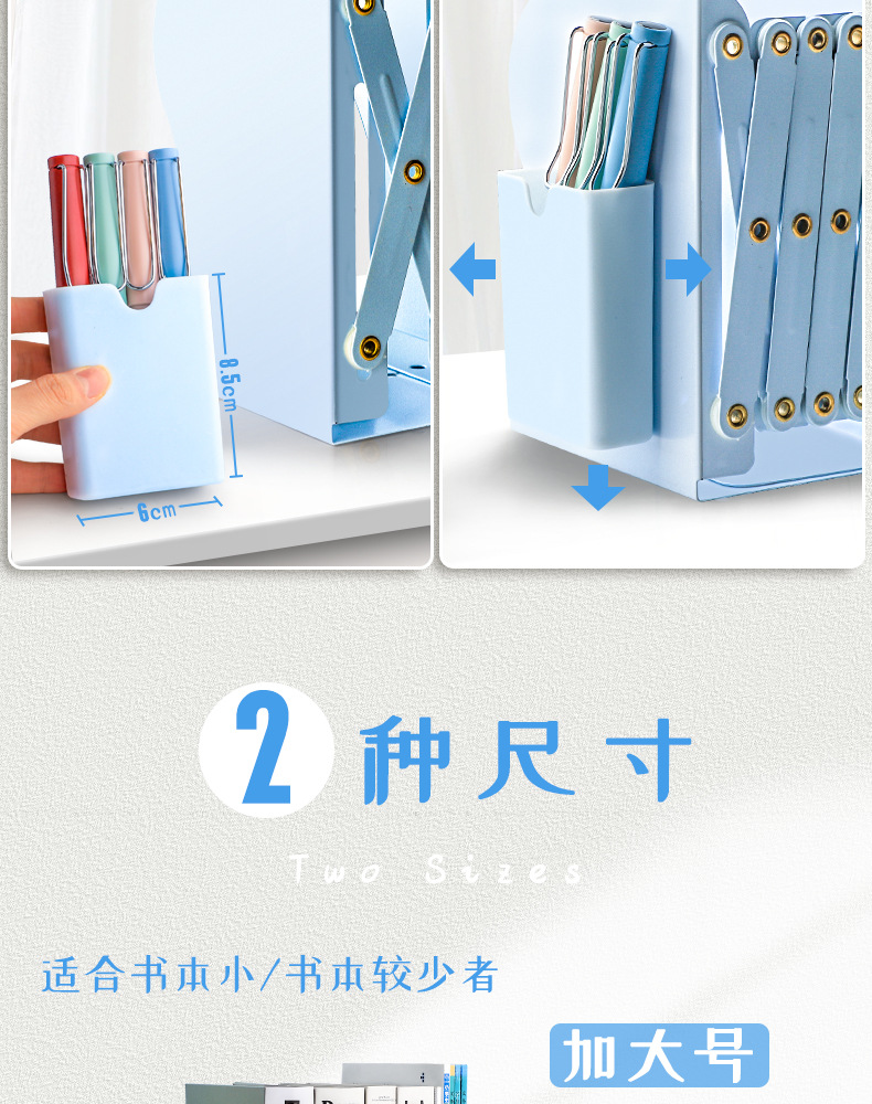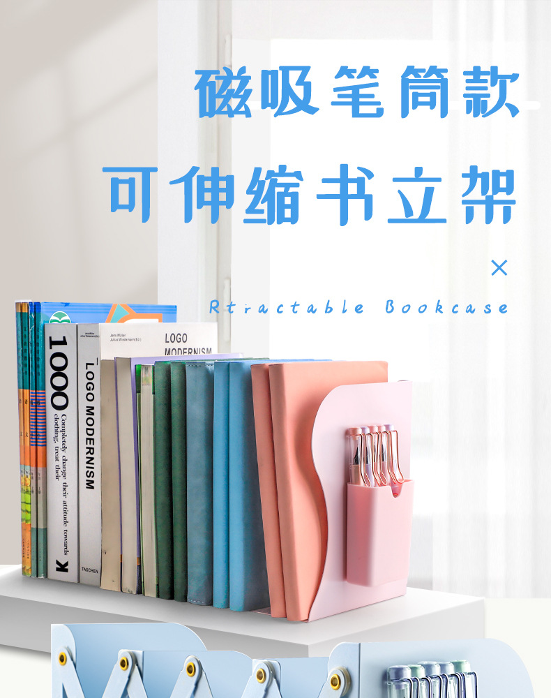 Libro retráctil con portalápices, estantería, escritorio integrado, estante de almacenamiento de libros, bisel para estudiantes de secundaria, clip de libro, plegado y fijo