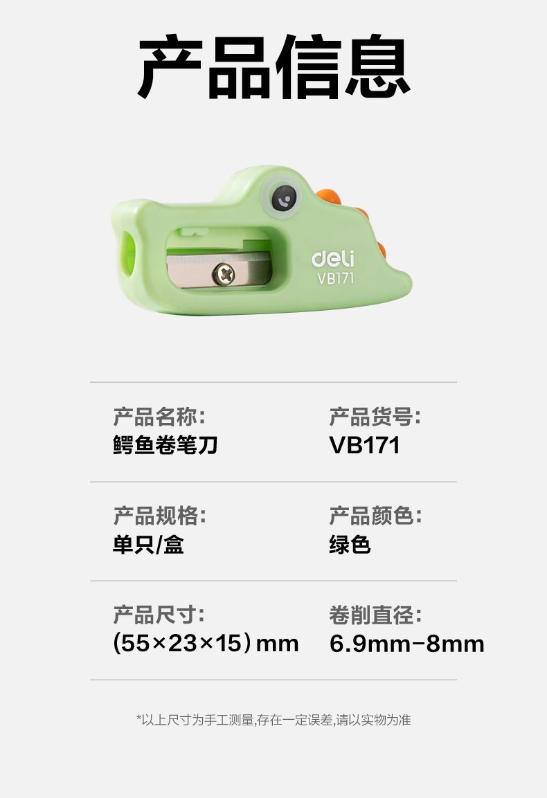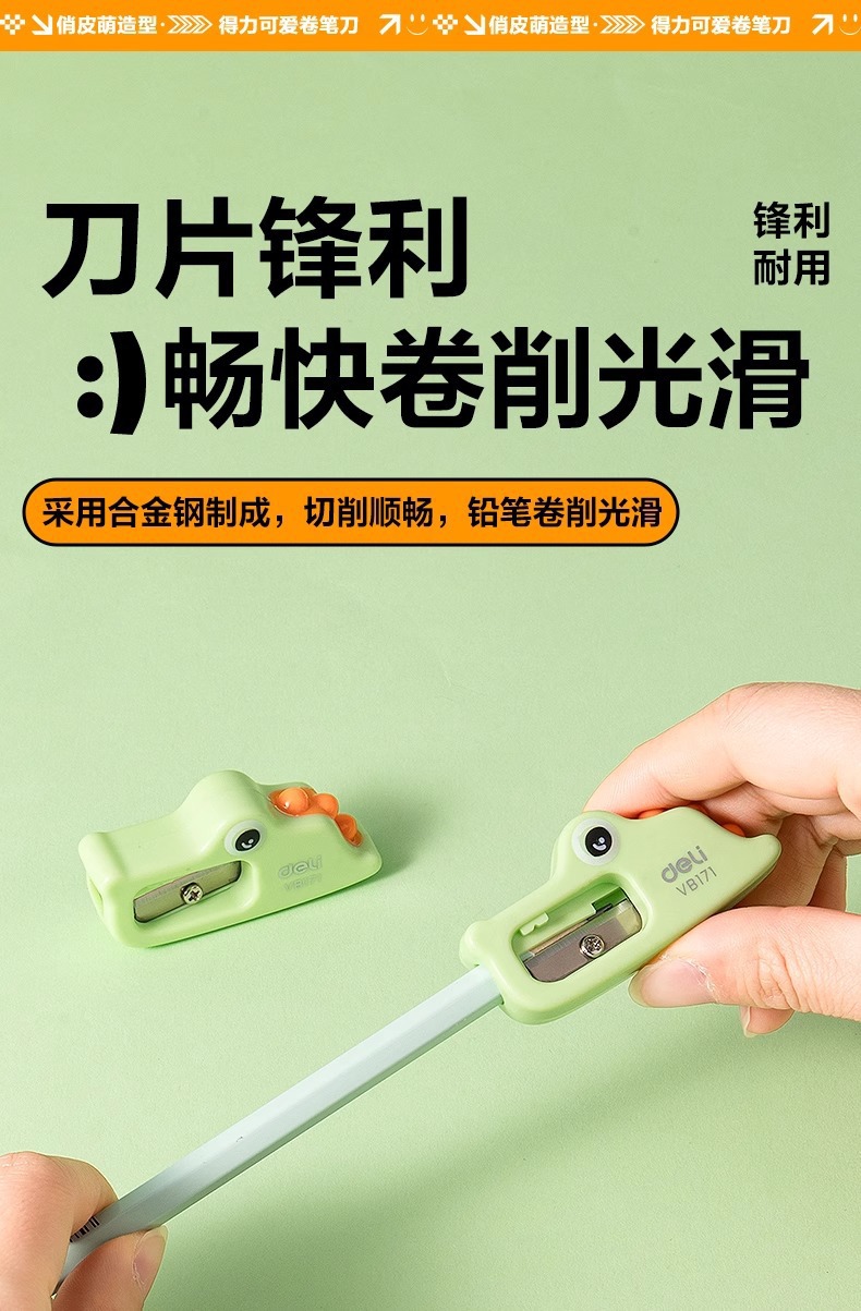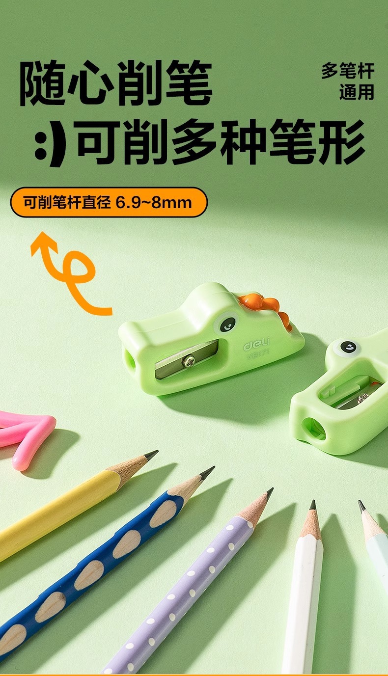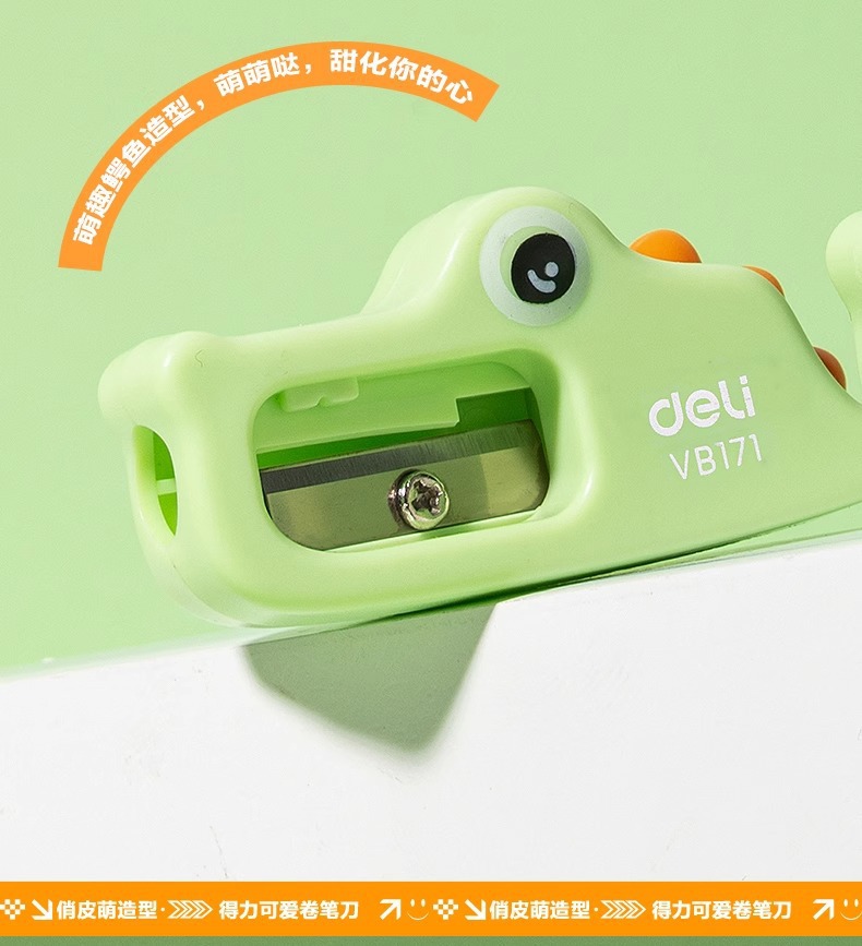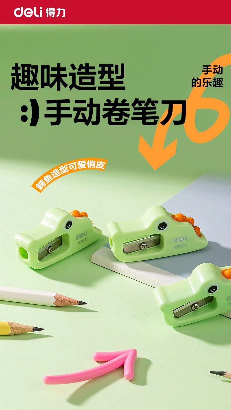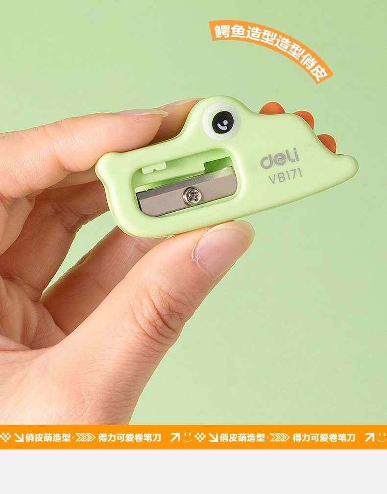Sacapuntas para niños Deli, sacapuntas giratorio, sacapuntas para estudiantes de primaria, mini cuchillo de dibujos animados manual, cepilladora de cocodrilo, pequeña
