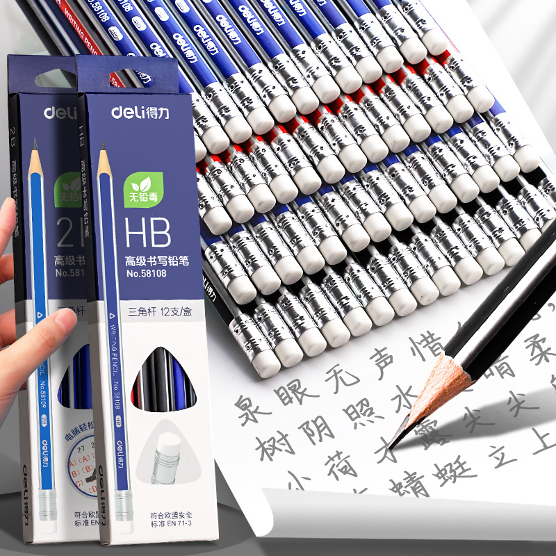 Deli lápiz estudiante de la escuela primaria no tóxico 2B triángulo Rod estudiante especial HB kindergarten Grado 1 2 relación niños lápiz