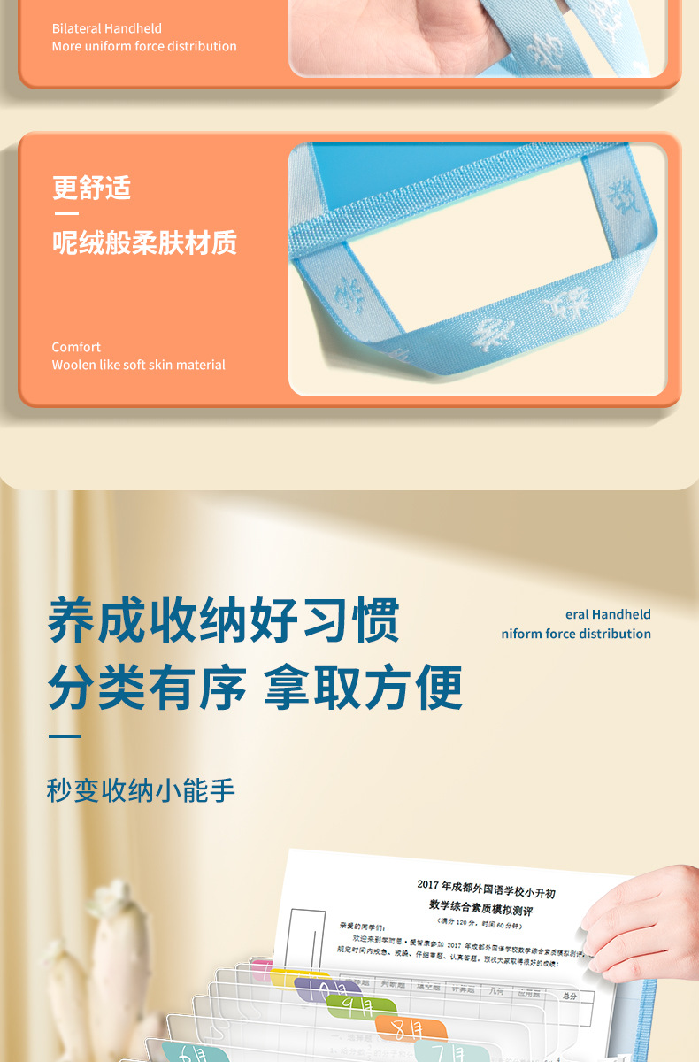 gran capacidad multicapa papel de prueba paquete de órgano material de almacenamiento de estudiantes carpeta bolsa de almacenamiento de estudiantes de primaria bolsa de almacenamiento de papel
