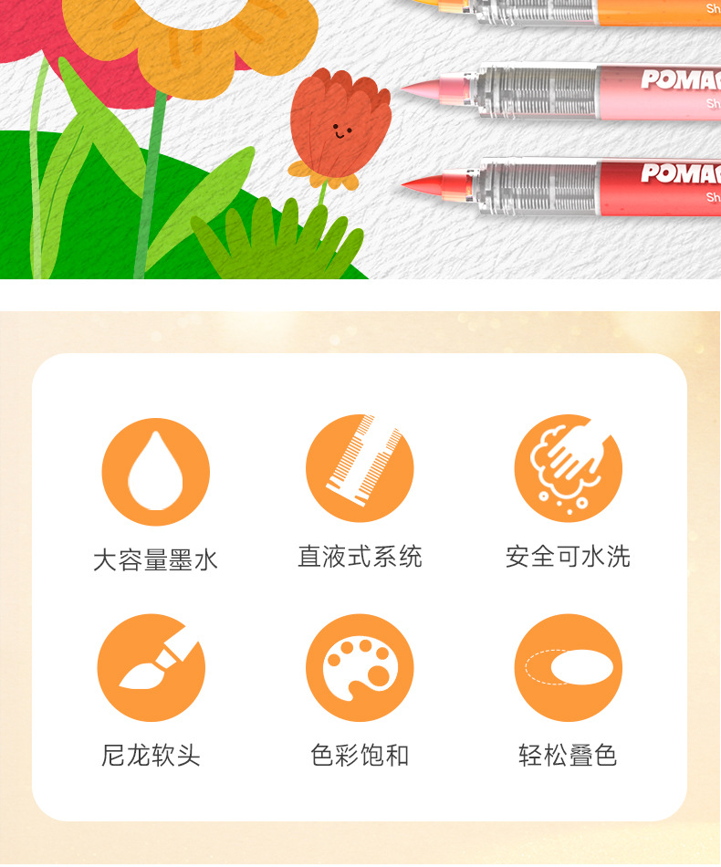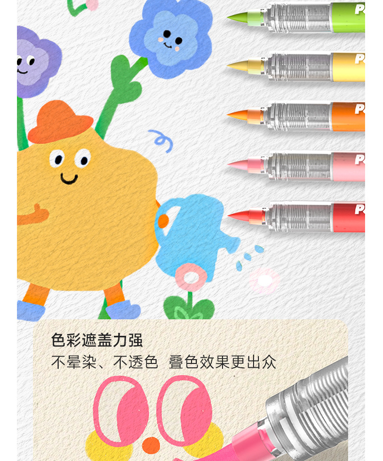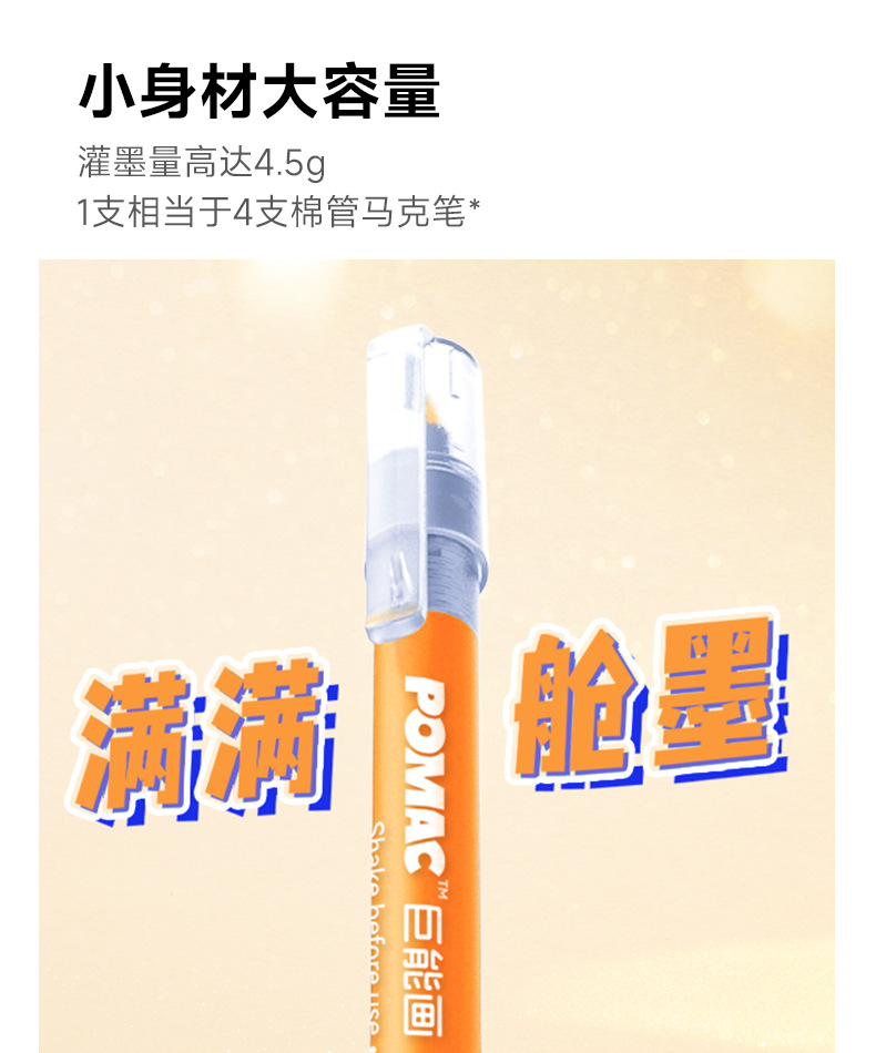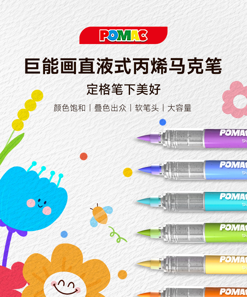 Blanca nieve POMAC tipo líquido directo de punta suave acrílico marcador de lápiz para estudiantes de primaria con color opaco se puede apilar y lavar con agua