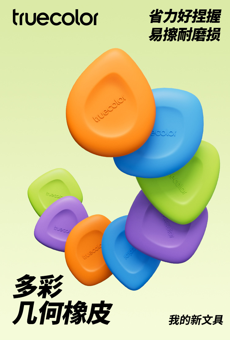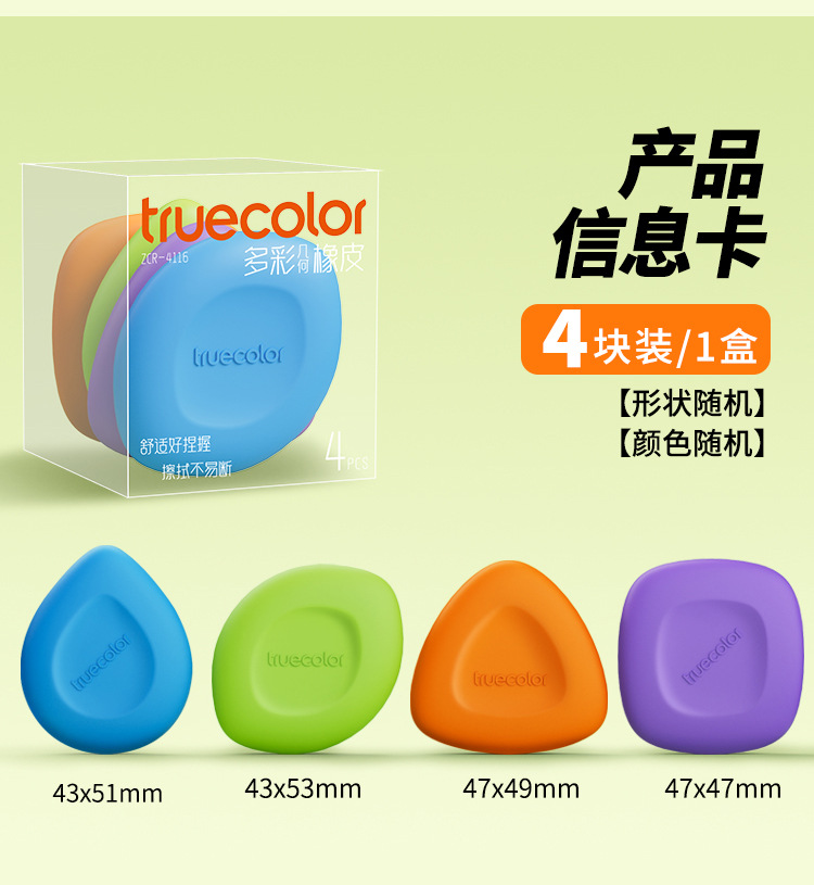 Color verdadero color pequeño cuadrado borracha para estudiantes de primaria ranura geométrica especial pellizco de caracteres pellizco en líneas sin chip super