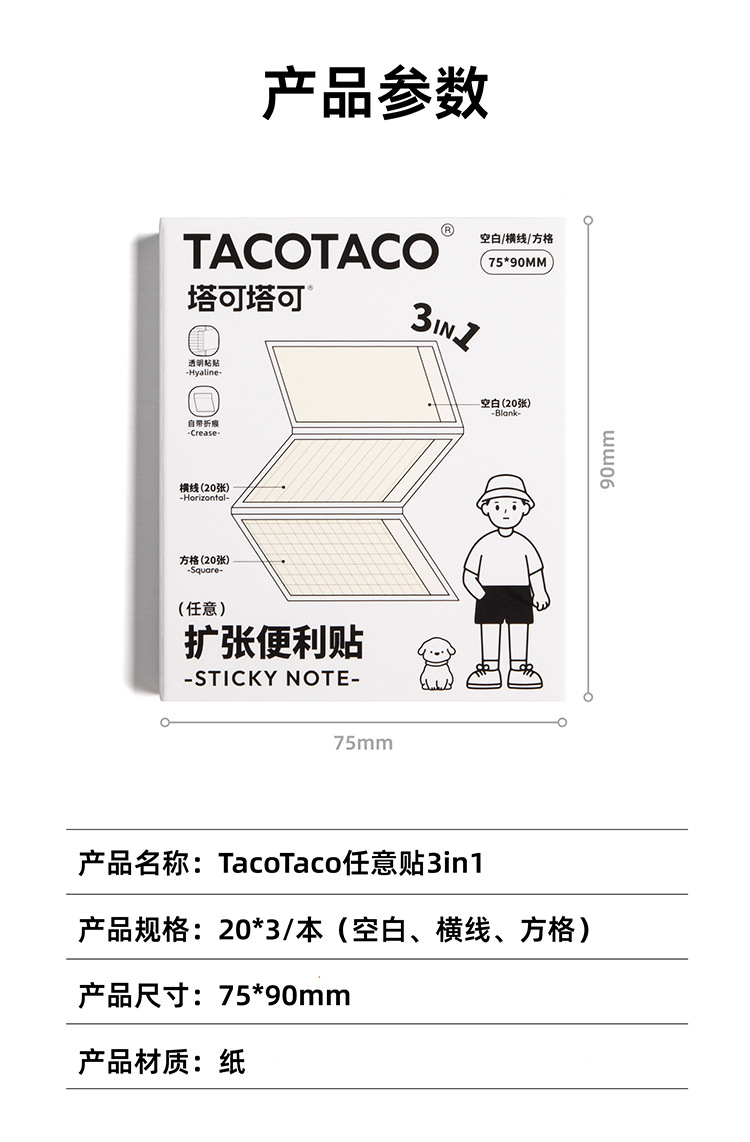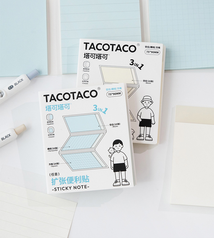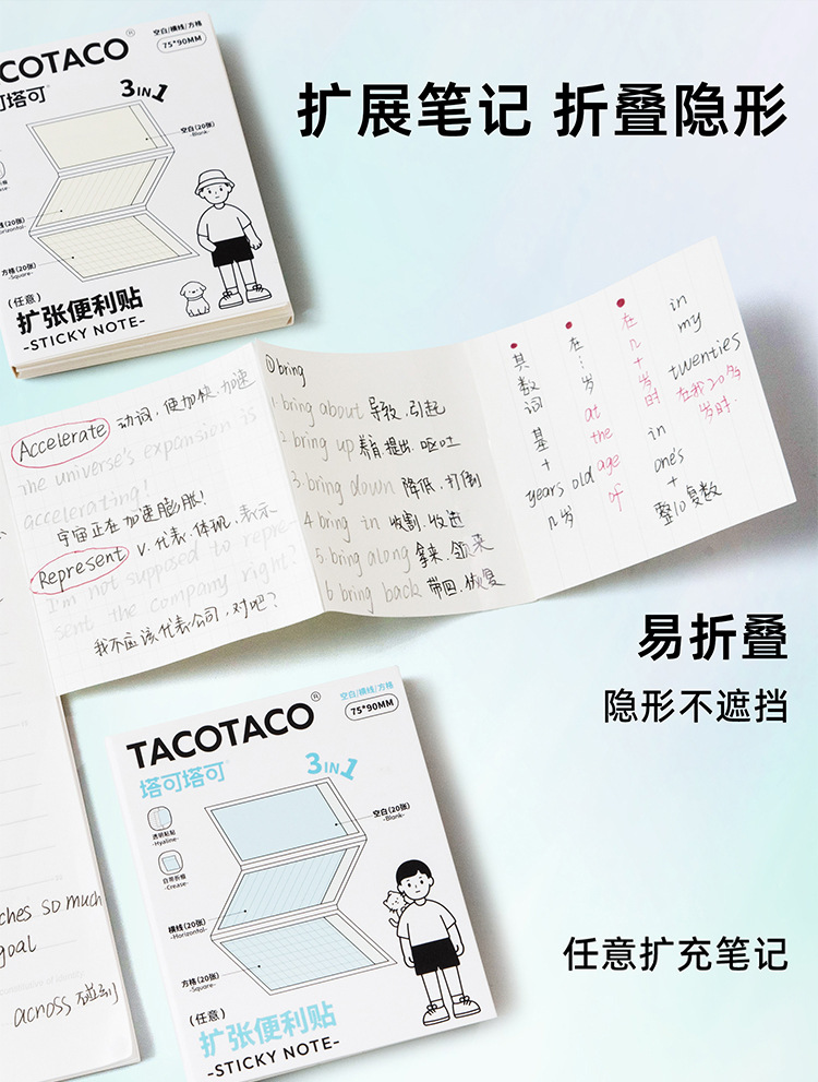 TACOTACO expansión 3 - en - 1 no bloquear pegatinas plegables para estudiantes con pegatinas adhesivas desgarrables