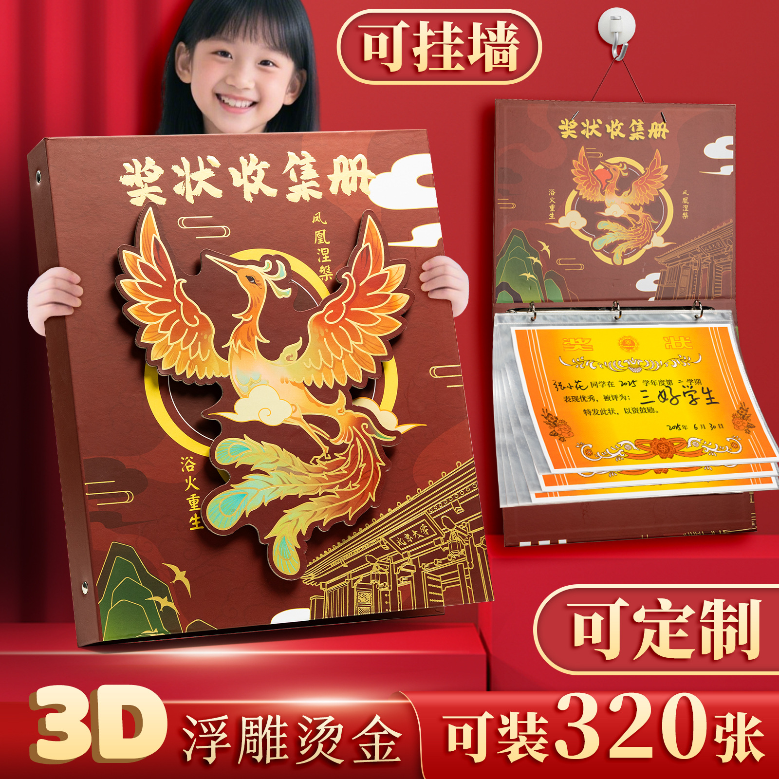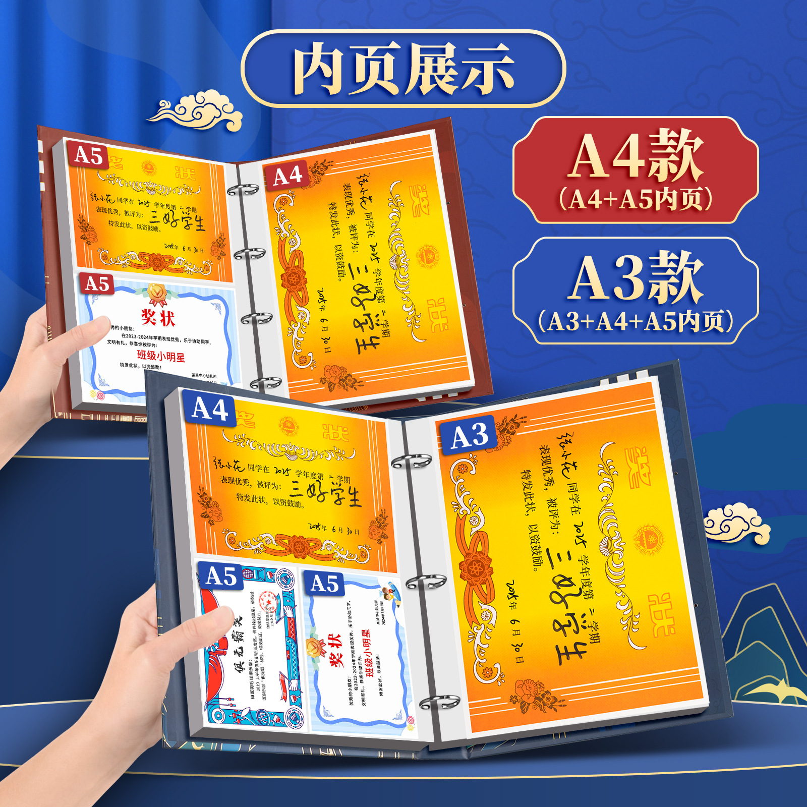 Colección de galardones de viento chino, niños y niñas, certificado de honor a4, álbum de artefactos para estudiantes de primaria, marea nacional retro