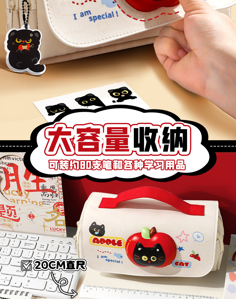 Apple Cat Handheld Reducing Pressure Pen Bag Paper Bag