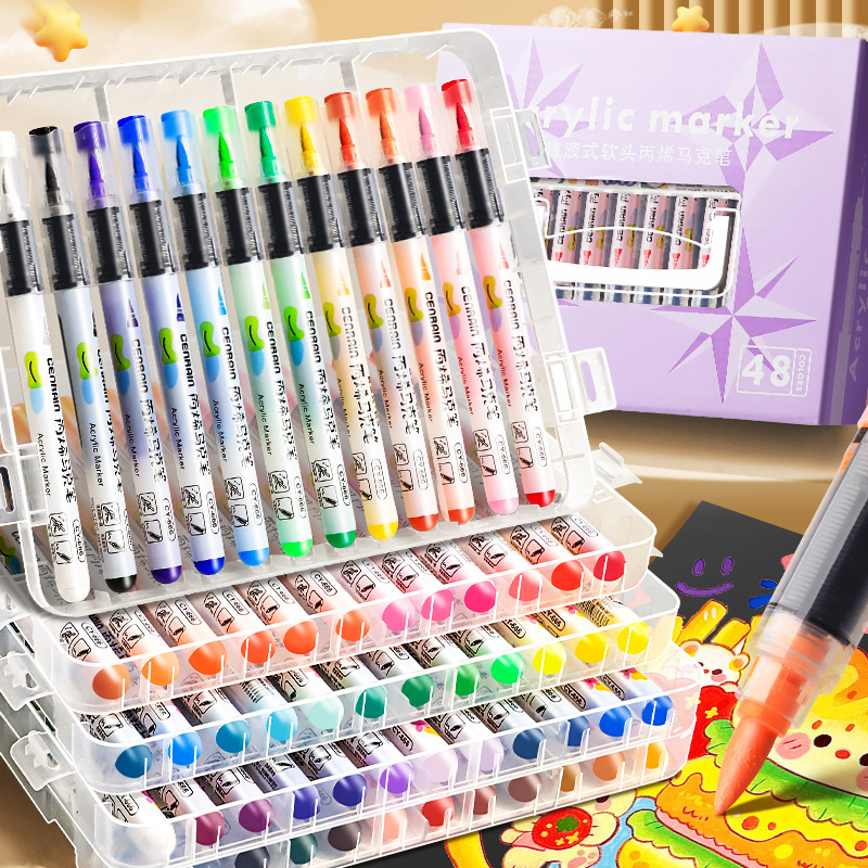 Líquido recto tipo blando acrílico marcador de pluma acuarela conjunto de color impermeable impermeable plegable pincel de pintura de color estudiantes de arte