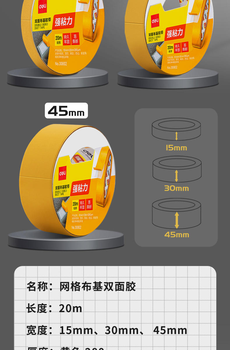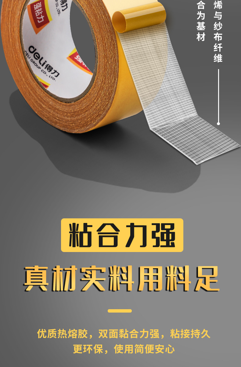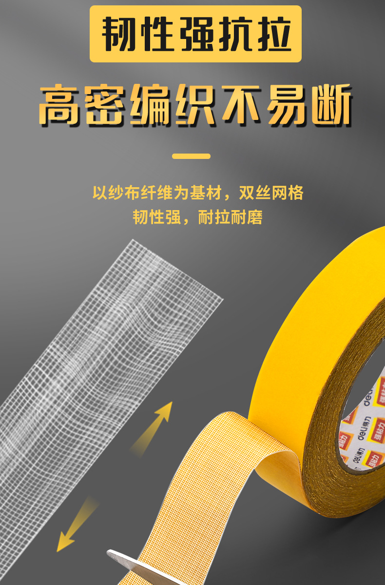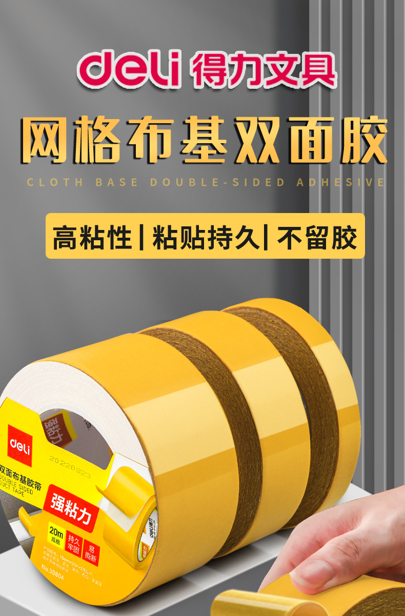 Deli malla cinta de doble cara fuerte adhesivo de doble cara de alta viscosidad alfombra fija sin marca impermeable amarillo transparente libre