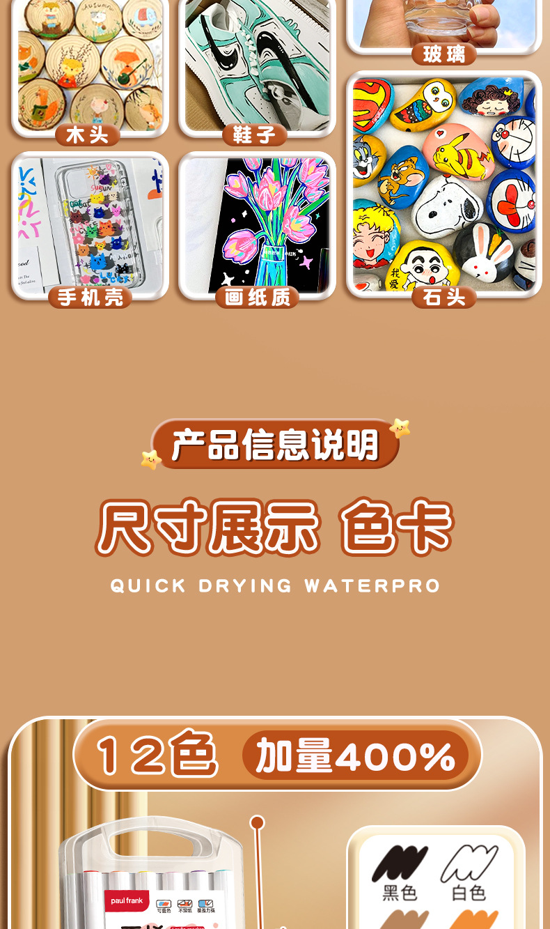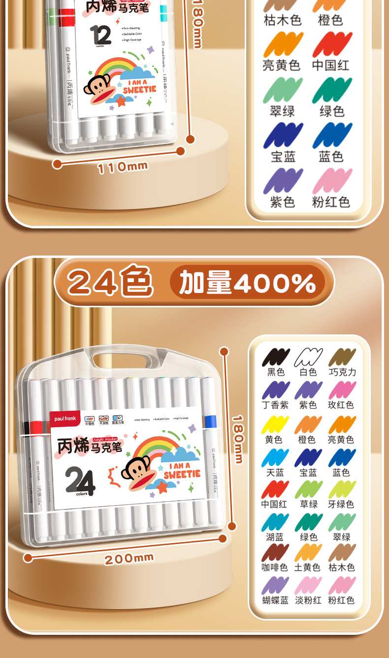 | Especificaciones | Caja de marcadores acrílicos, juego de 12 colores.,Caja de marcadores acrílicos, juego de 24 colores.,Caja de marcadores acrílicos de 36 colores.,Caja de marcadores acrílicos de 48 colores.,Caja de rotuladores acrílicos de 60 colores. |