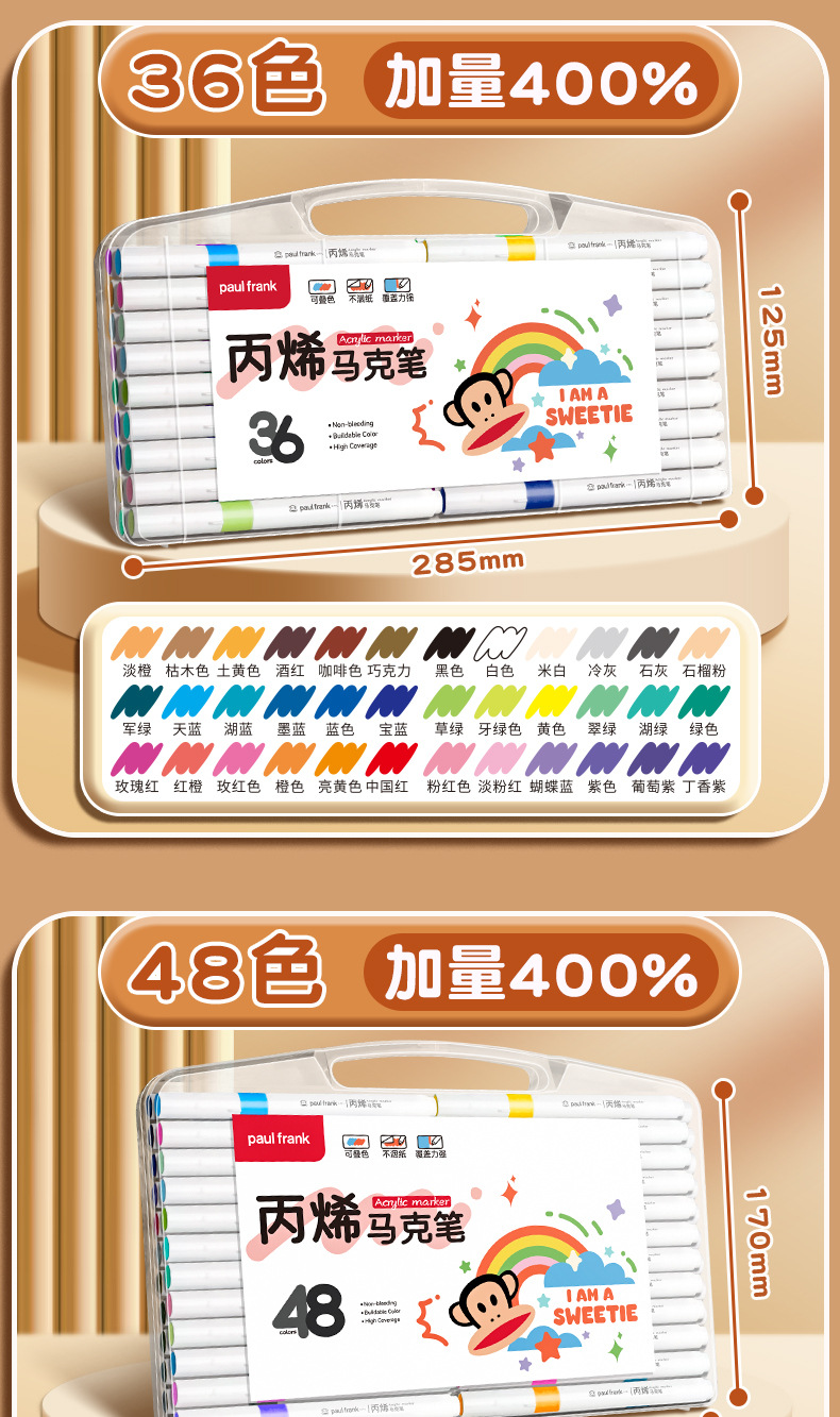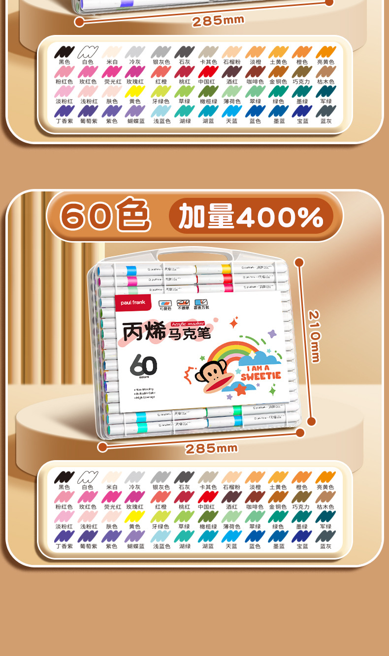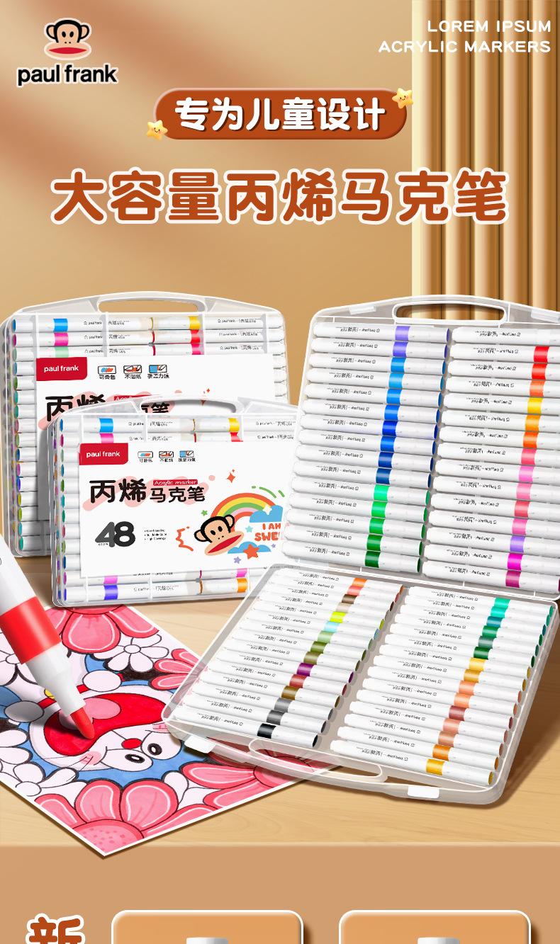 Marcadores acrílicos Big Mouth Monkey, portátiles, para niños, apilables, colores que no se difuminan en papel, para jardín de infantes, 60 colores, 48 colores.