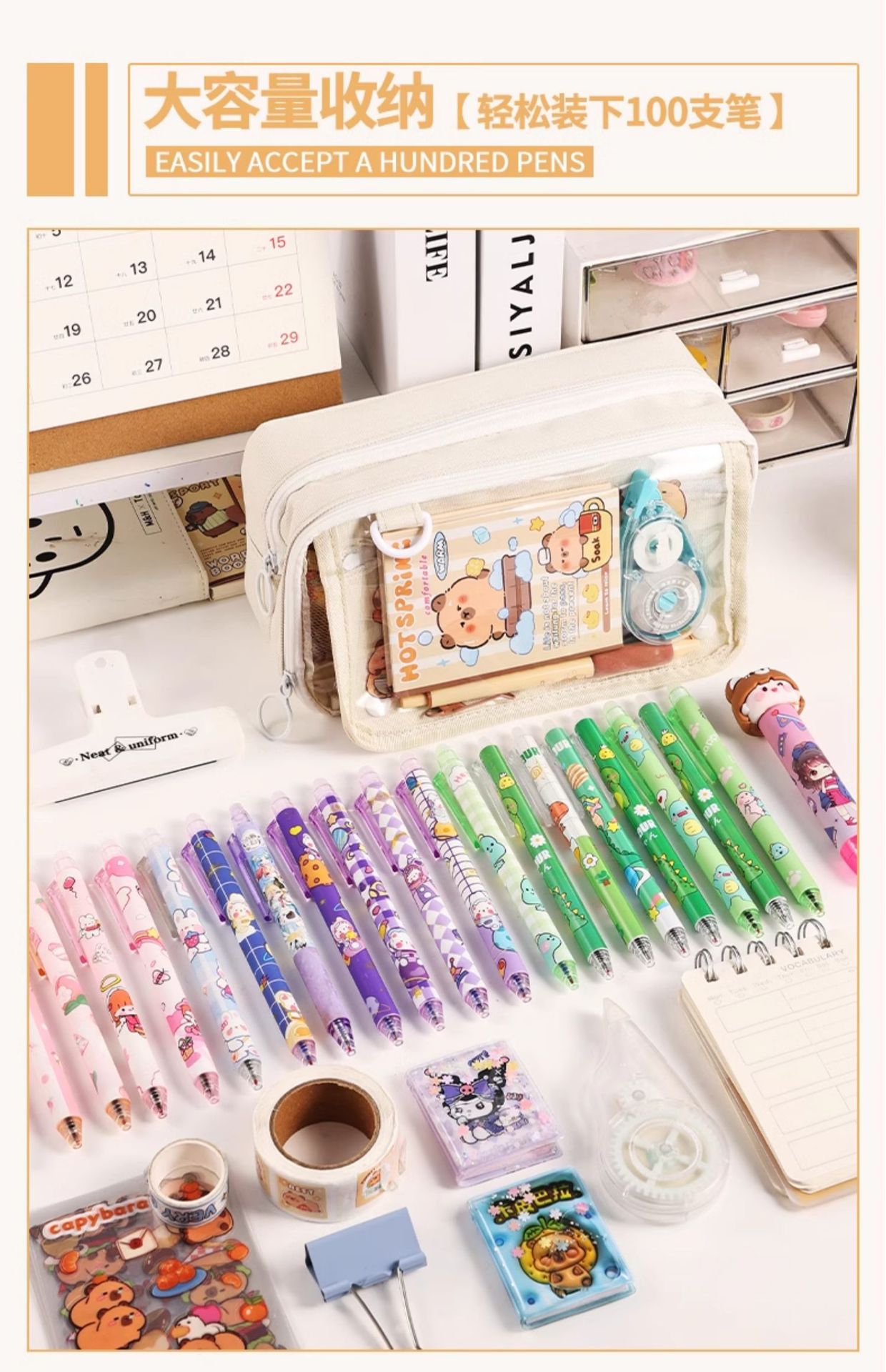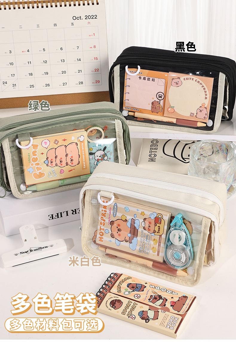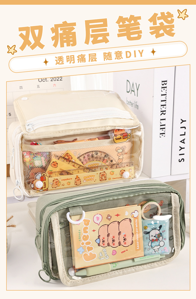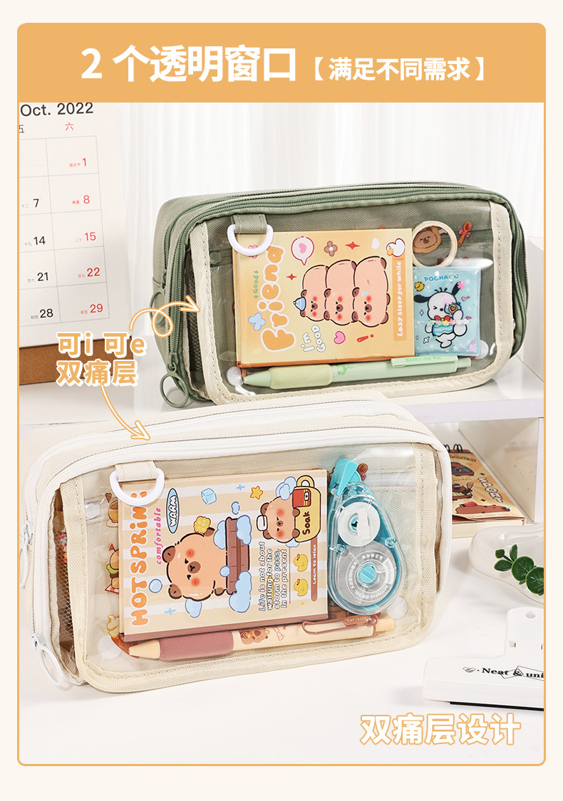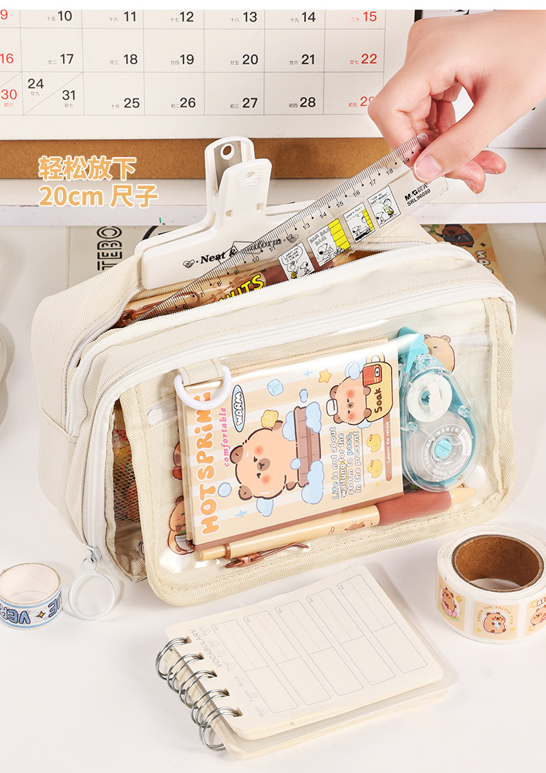 Bolsa de bolígrafo transparente Bolsa de papelería multifuncional para niñas estudiantes de primaria, estudiantes de secundaria secundaria, niños de alto valor facial, tamaño súper grande