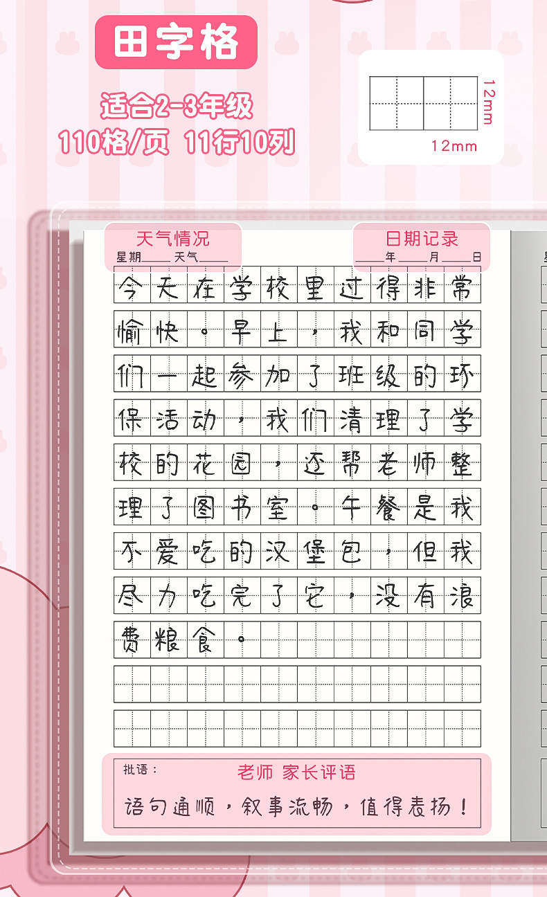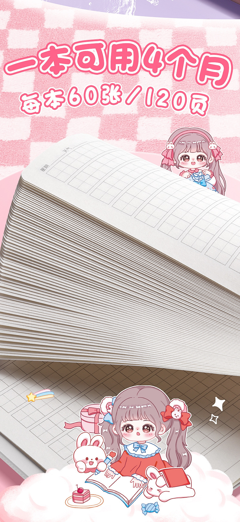 Cuaderno de diario para niños y niñas cuaderno de cuadros de dibujos animados para estudiantes cuadros de notas cuadrados cuadros de pinyin