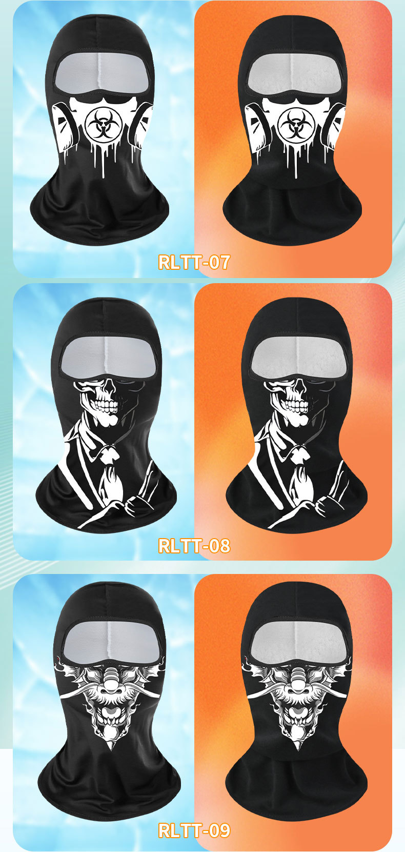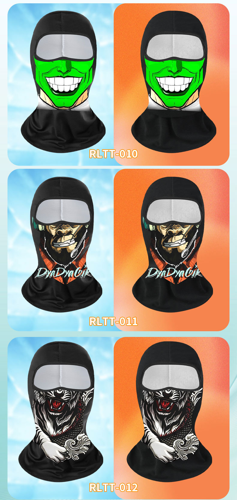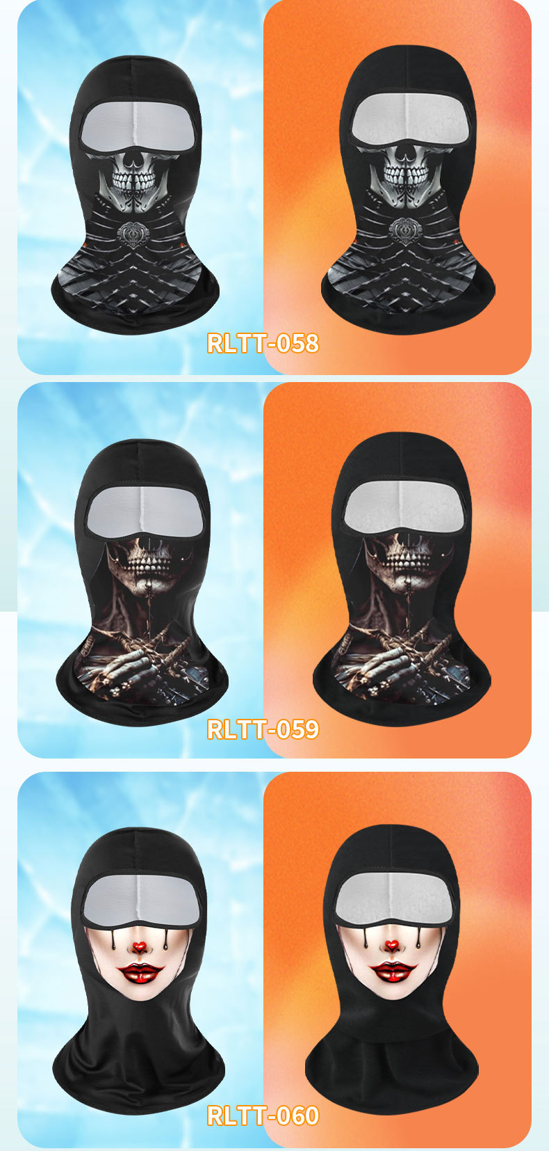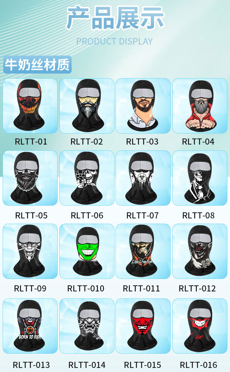 Verano máscara de ciclismo de hielo extraña impresión digital de cara anti-UV sombrero de motocicleta sombrero de protección solar