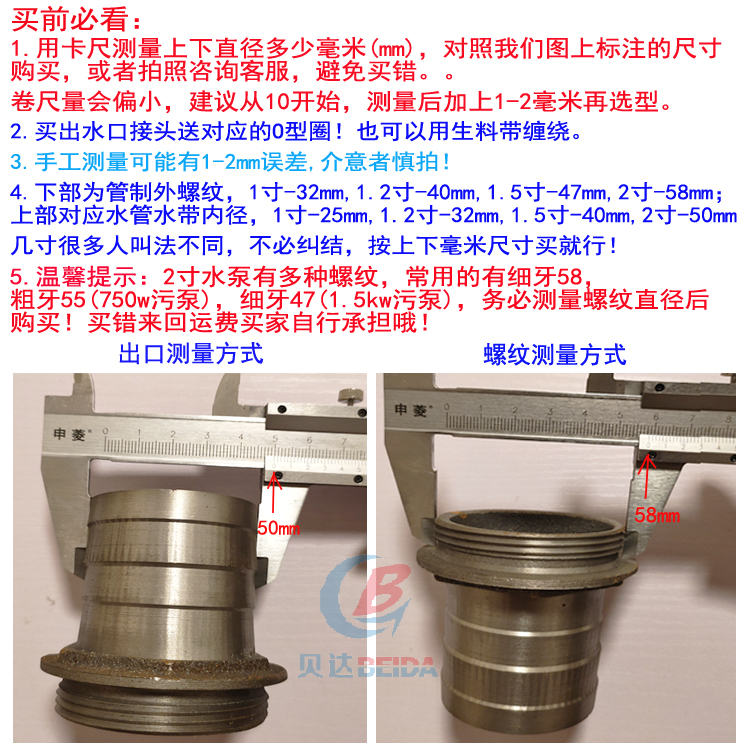 | Especificaciones y modelos | 1 pulgada de hierro chapado en blanco (32 rp25), 1 pulgada de hierro fundido (32 rp25), doble alambre exterior engrosado 32 rp25 mm, 1 pulgada de hierro fundido curvo (32 rp25), 1 pulgada a 1,2 pulgadas (32 rp31), 1 pulgada a 1,5 pulgadas de hierro chapado en blanco (32 rp40), hilo 32 rp20, 1,2 pulgadas a 1 pulgada (40 rp25), doble alambre exterior engrosado 40 rp25 mm, 1,2 pulgadas a 1,2 pulgadas (40 rp31), 1,2 pulgadas a 1,5 pulgadas (40 rp35), 1,5 pulgadas (47 rp25) doble alambre exterior el engrosamiento de la seda exterior doble es de 47 a 25 mm, 1,5 a 1,2 pulgadas (47 a 31), el engrosamiento de la seda exterior doble es de 47 a 32 mm, 1,5 a 1,5 pulgadas (47 a 39), 1,5 a 2 pulgadas (47 a 49), 1,5 a 2,5 pulgadas (47 a 62), 2 a 1 pulgada (55 a 25), 2 a 1,2 pulgadas (55 a 31), 2 a 1,5 pulgadas (55 a 39), 2 a 25 pulgadas (55 a 49), 2 a 1 pulgada (58 a 1), 2 a 1 pulgada (58 a 25).seda, 2 pulgadas a 1,2 pulgadas (58 a 31), 2 pulgadas a 1,5 pulgadas (58 a 39), 2 pulgadas a 2 pulgadas (58 a 49), 2 pulgadas a 2,5 pulgadas (58 a 62), Pequeño 3 pulgadas a 2 pulgadas (74 a 50), pequeño 3 pulgadas a 2,5 pulgadas (74 a 62), pequeño 3 pulgadas (74 a 74), grande 3 pulgadas a 2,5 pulgadas (87 a 63), grande 3 pulgadas (87 a 74), nuevo producto grande 3 pulgadas a 2 pulgadas (87 a 50), grande 3 pulgadas a 4 pulgadas (87 a 100), hilo de galvanoplastia 40 a 25 hilos exteriores, hilo de galvanoplastia 40 a 40, hilo de galvanoplastia 47 a 32 hilos exteriores, hilo de galvanoplastia 47 a 40 hilos exteriores, hilo de galvanoplastia 47 a 40 hilos exteriores, hilo de galvanoplastia 47 a 50 hilos exteriores, hilo de galvanoplastia 58 a 50 hilos de galvanoplastia, hilo de galvanoplastia 58 a 50 hilos exteriores, hilo de galvanoplastia 58 a 47 a 50 hilos exteriores, hilo de galvanoplastia 47 a 50 hilos exteriores, hilo de galvanoplastia 58 a 60 |