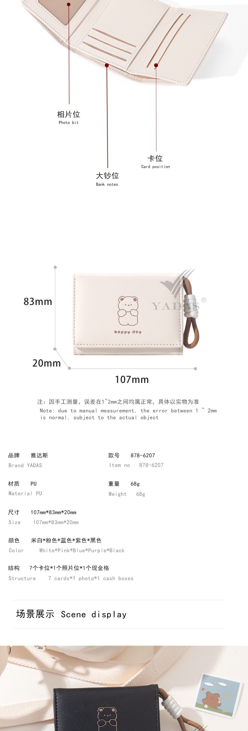 ![[Nudo Happy Bear] YADAS, tarjetero para mujer Xiaoxiang, billetera corta de tres pliegues de cuero PU de alta calidad](https://cbu01.alicdn.com/img/ibank/O1CN01yeVeUA1OfJ2qT09OX_!!2209975481732-0-cib.jpg)