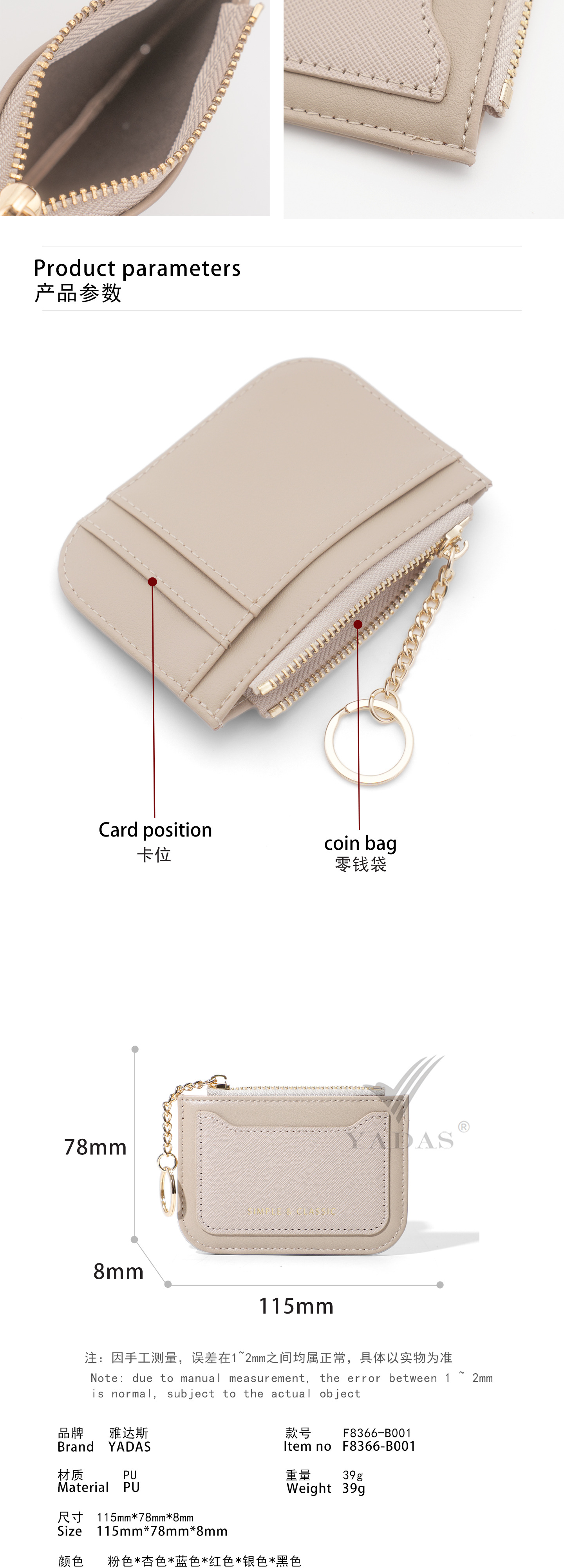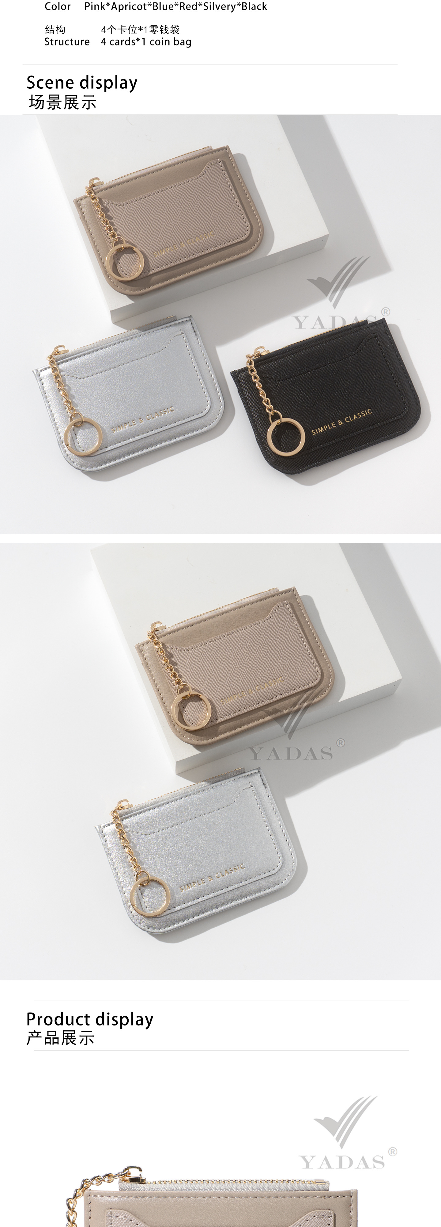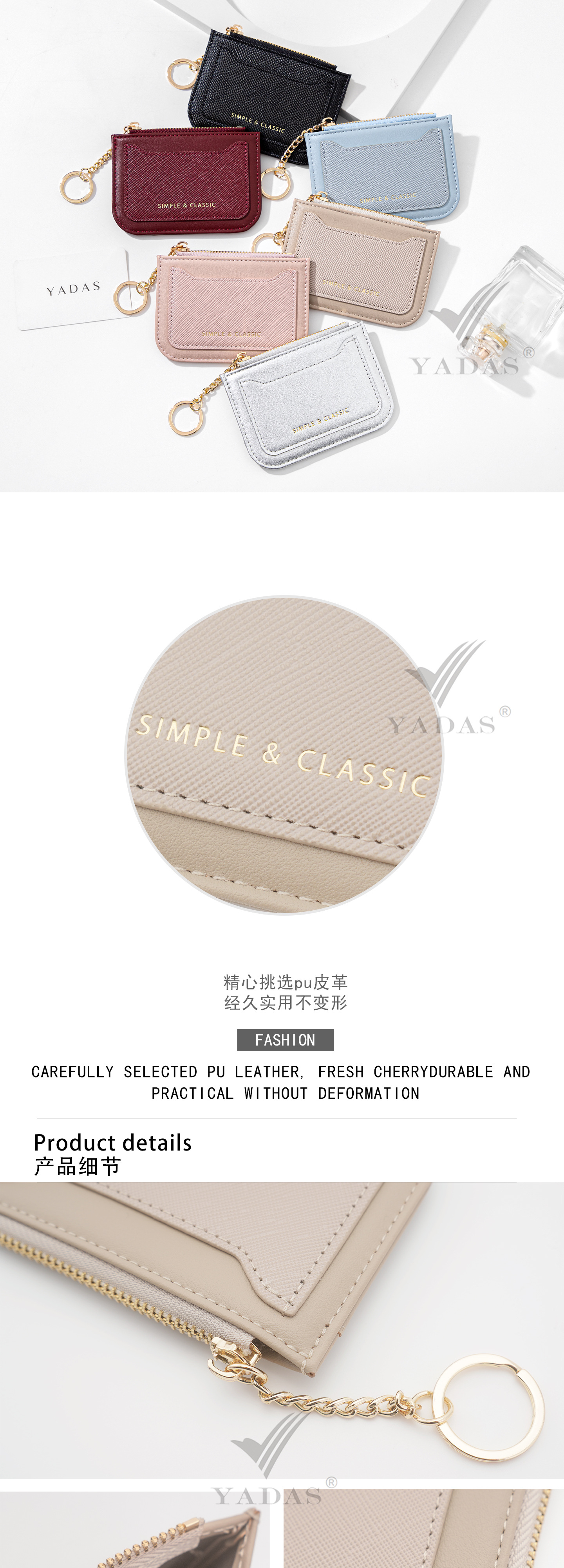 YADAS nuevo corto portátil tarjeta cartera multi-tarjeta función cremallera bolso de cambio bolsa de tarjetas de moda mujer pu
