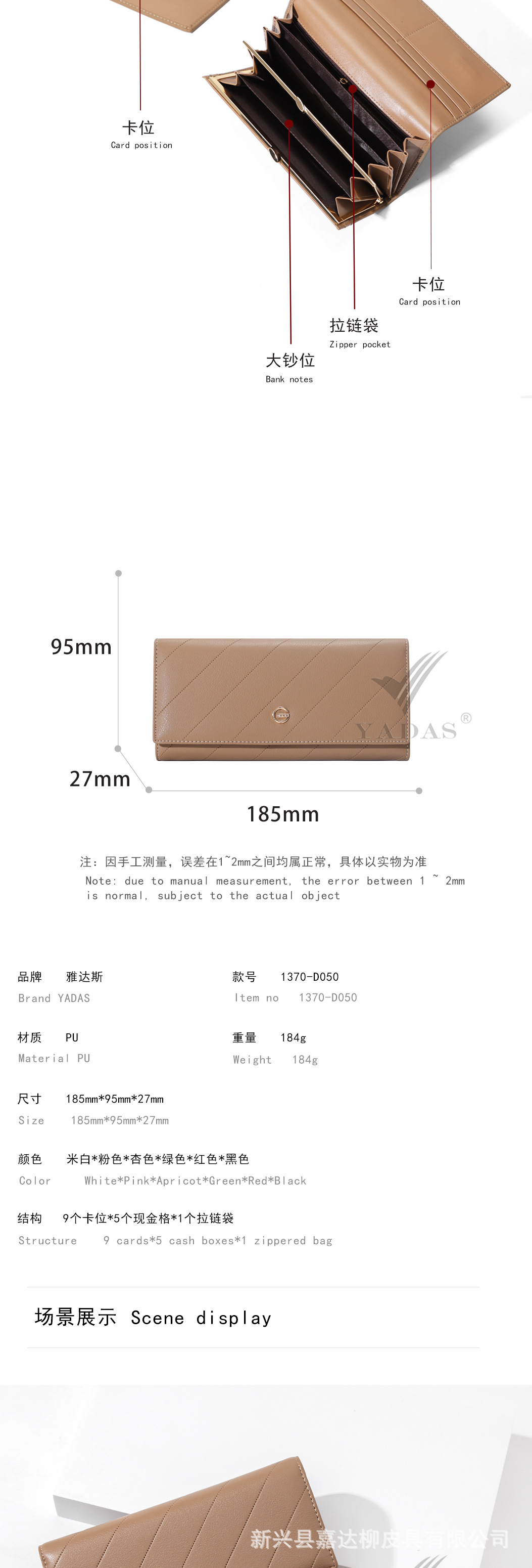 Cartera YADAS de estilo europeo y americano para mujer, cartera larga plegable, tarjetero de nuevo estilo para tarjetas bancarias y licencia de conducir.