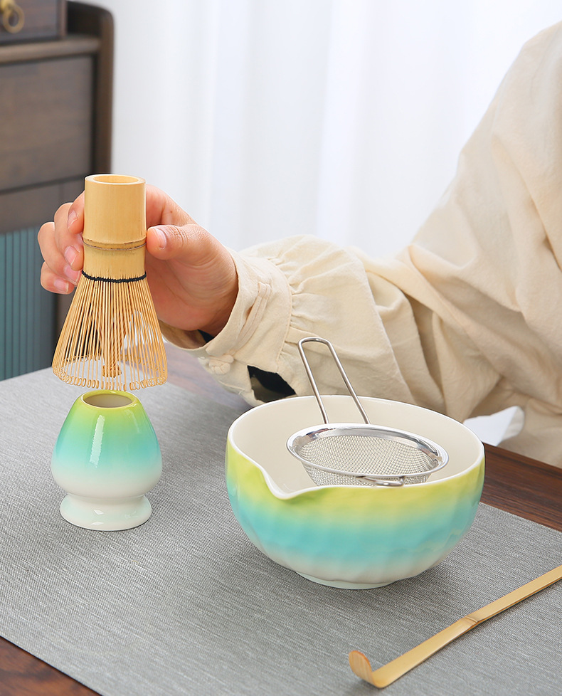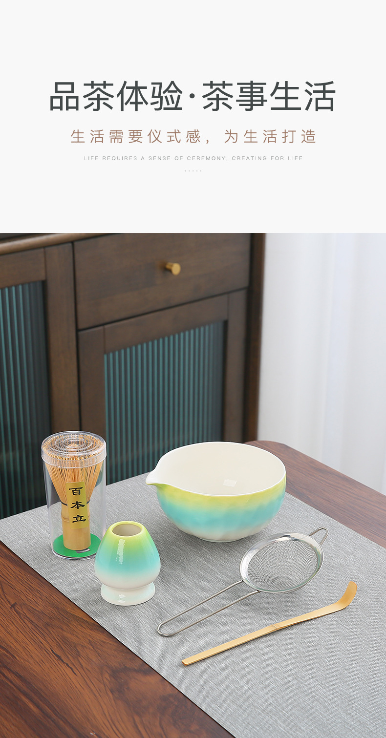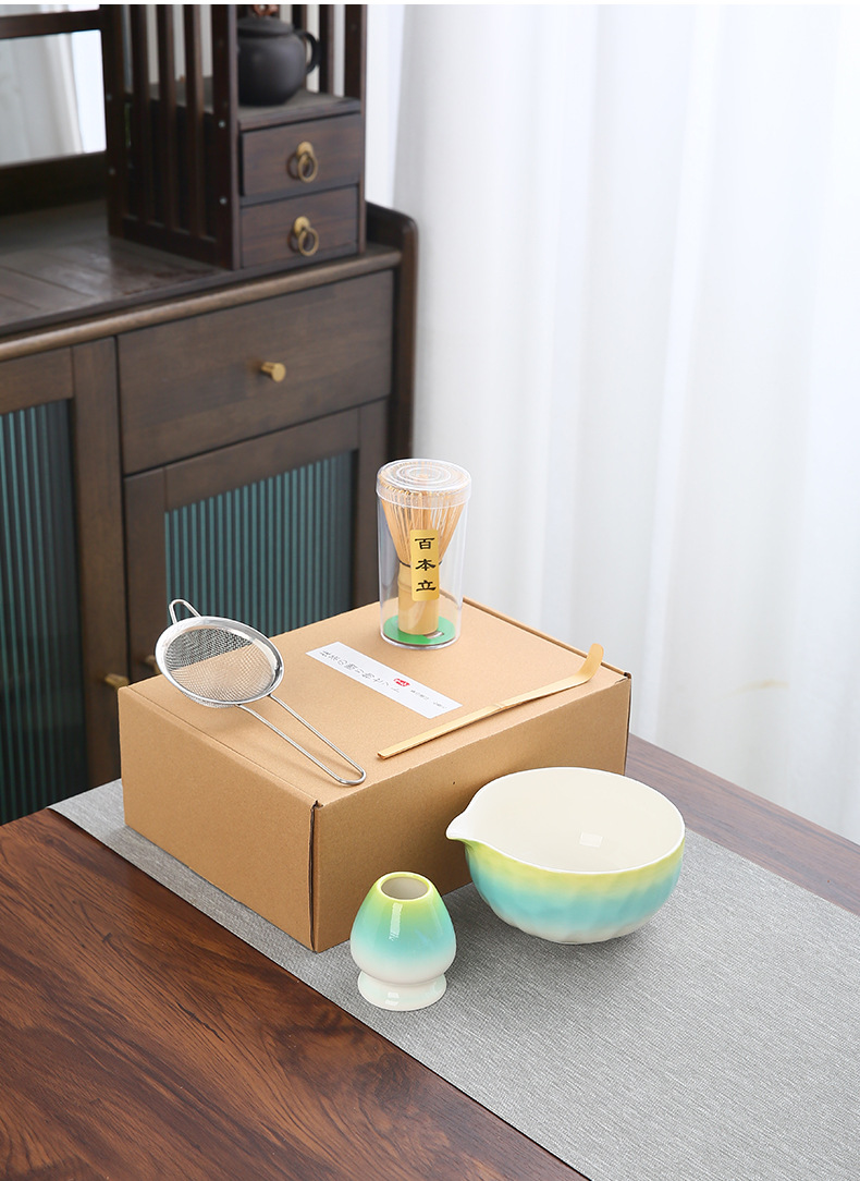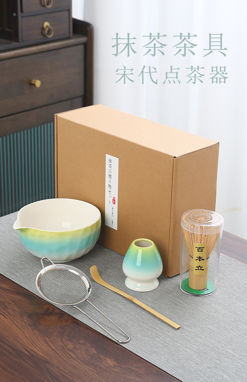 Juego de matcha degradado de matcha de estilo japonés exclusivo transfronterizo, cepillo de té Baibenli, juego de 5 piezas de herramientas de té de la dinastía Song