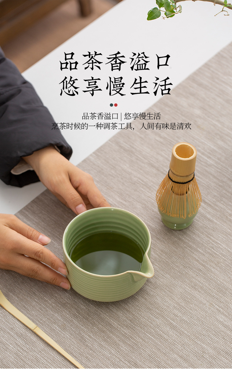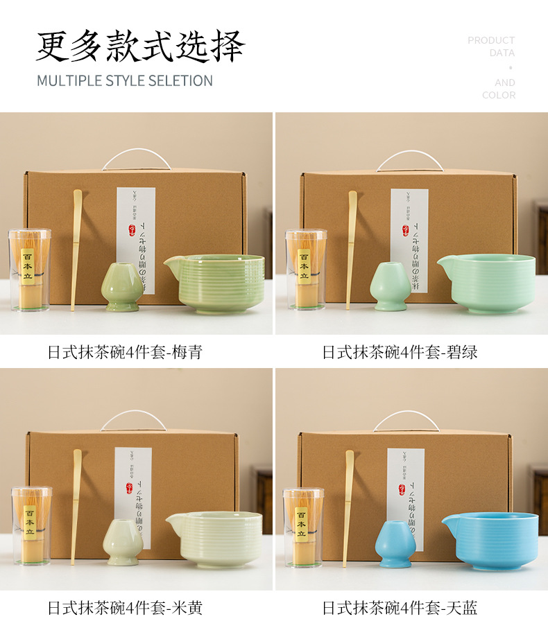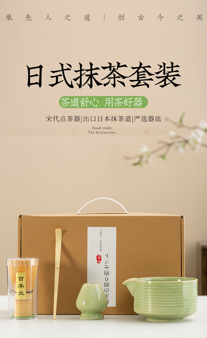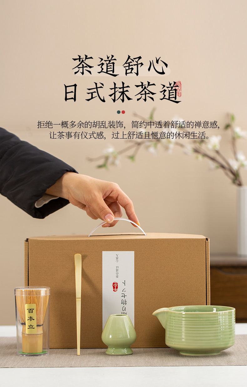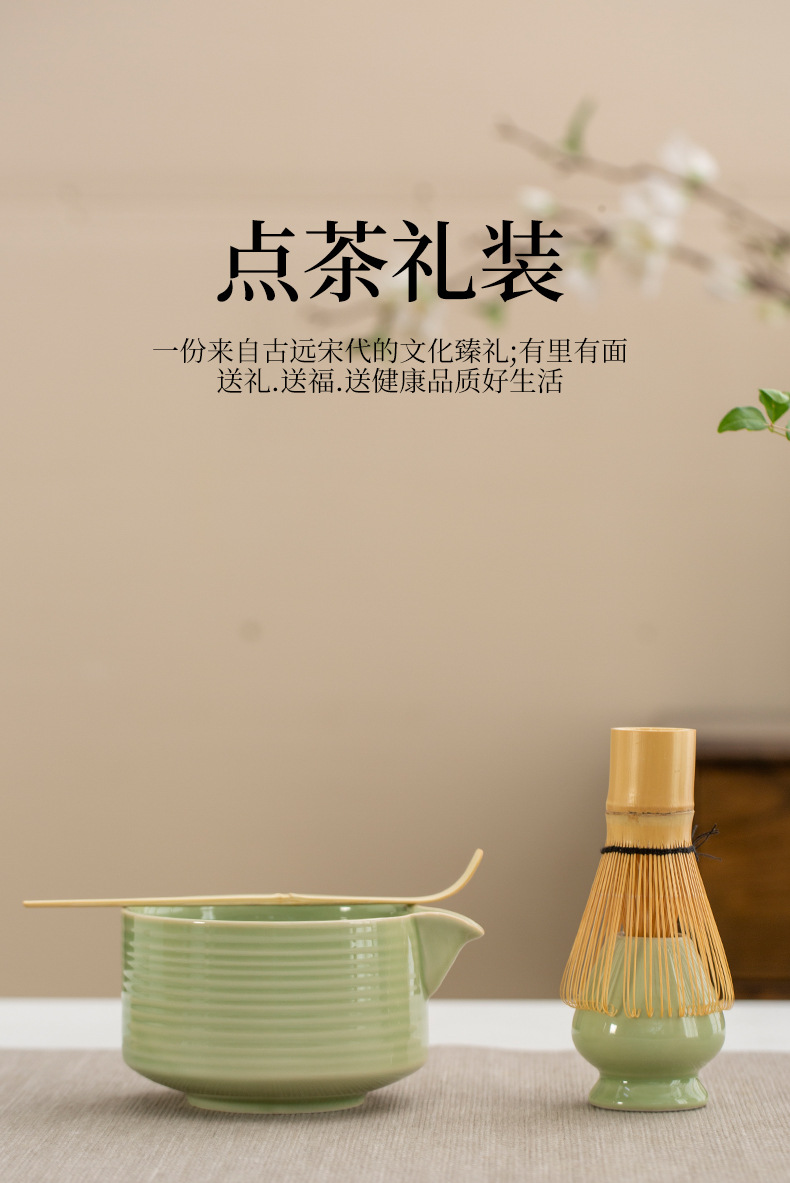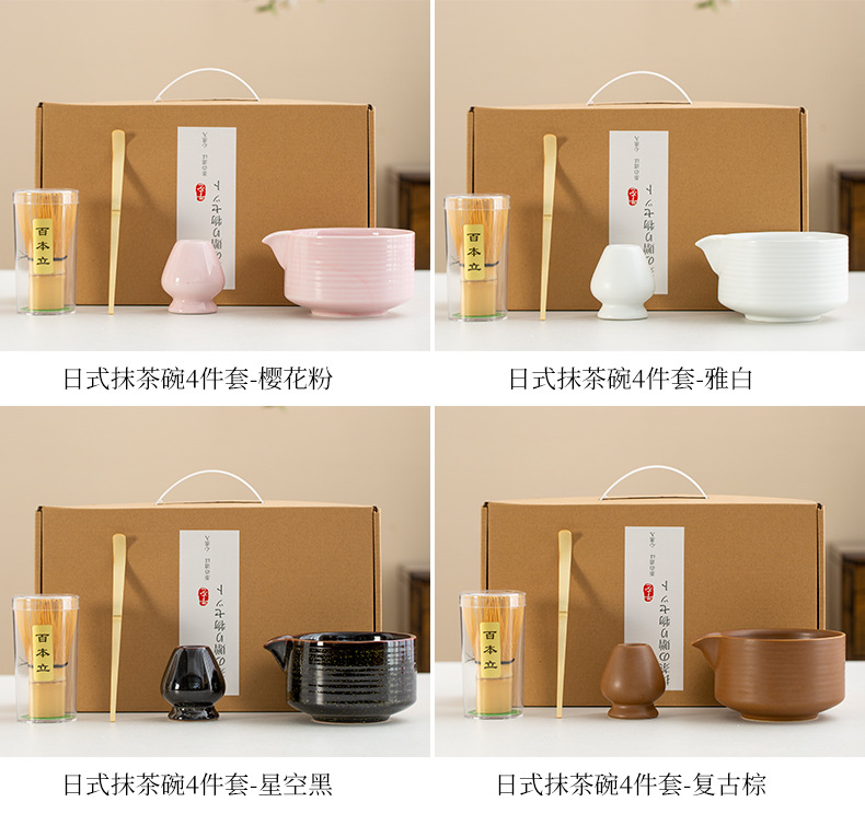 Juego de cuatro piezas de ceremonia del té de matcha, jaula de té de Baiben, tazón de té de pie, juego completo de combinación japonesa, té de punto, accesorios de jaula de té