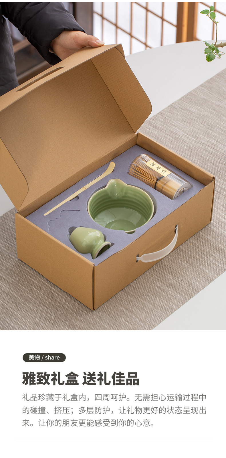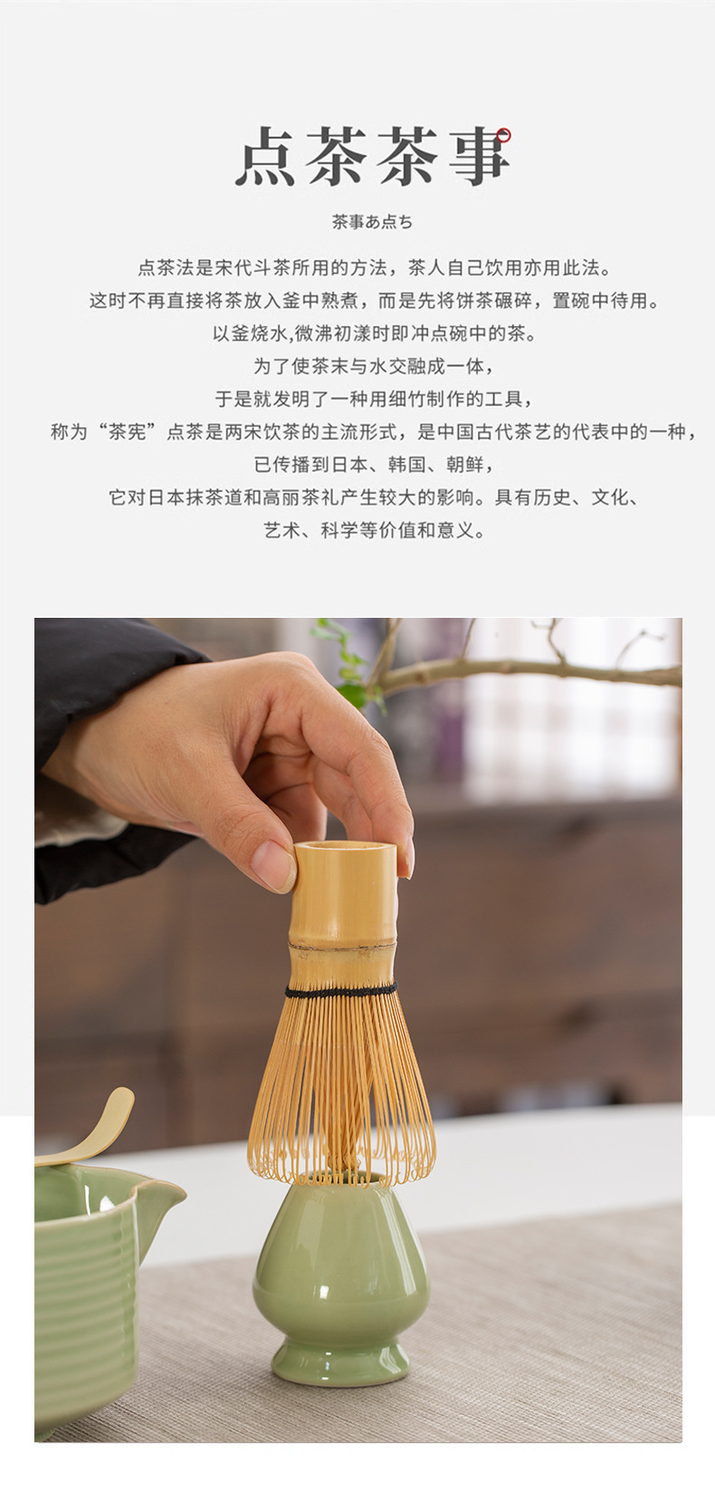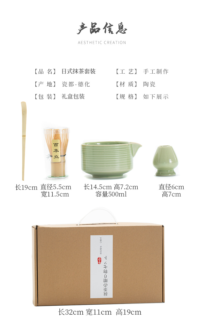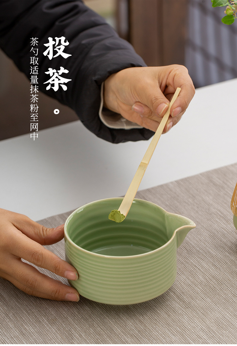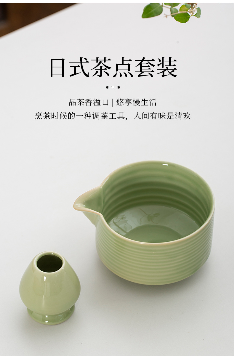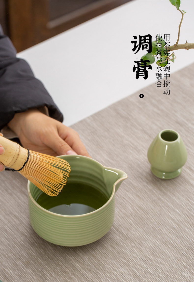 Juego de cuatro piezas de ceremonia del té de matcha, jaula de té de Baiben, tazón de té de pie, juego completo de combinación japonesa, té de punto, accesorios de jaula de té