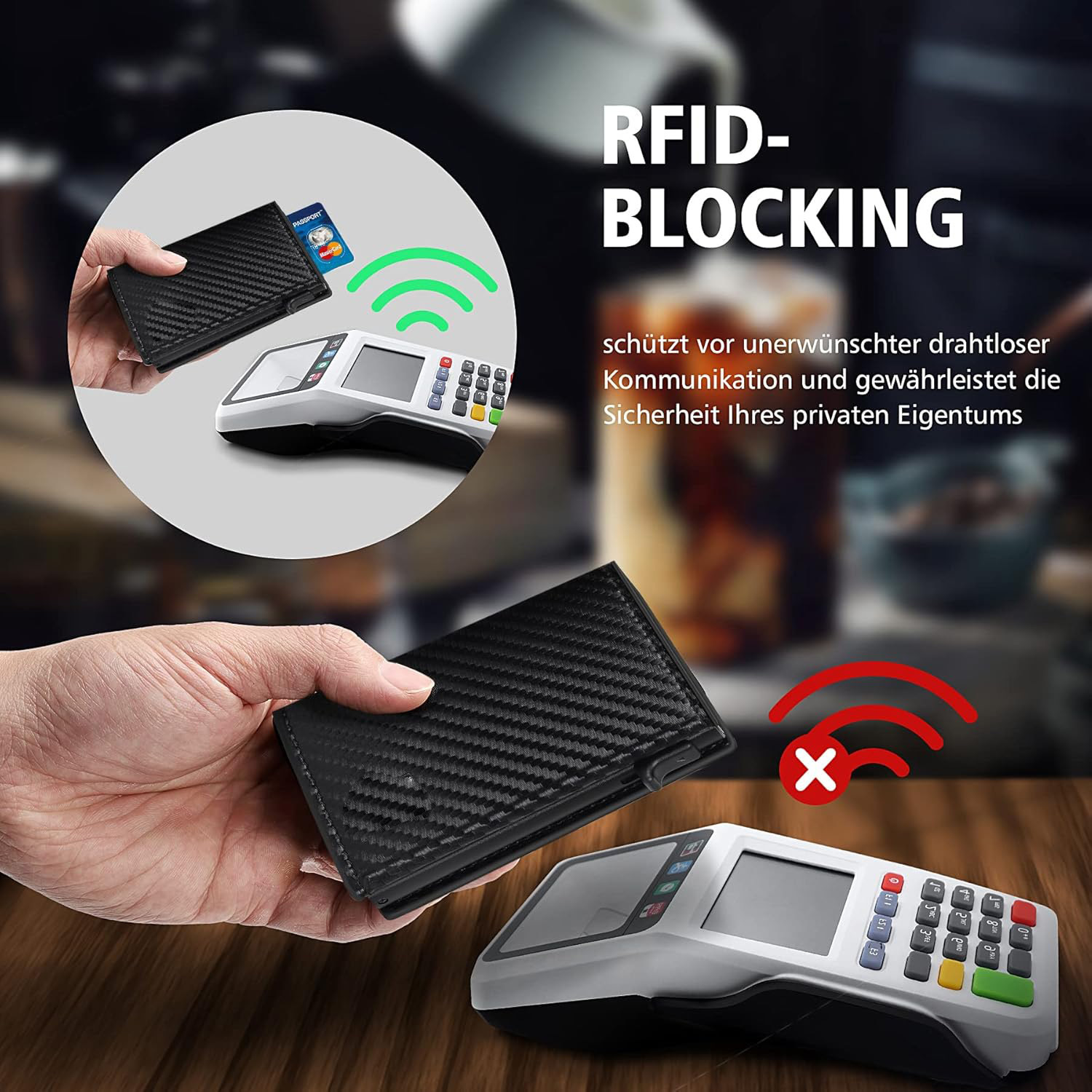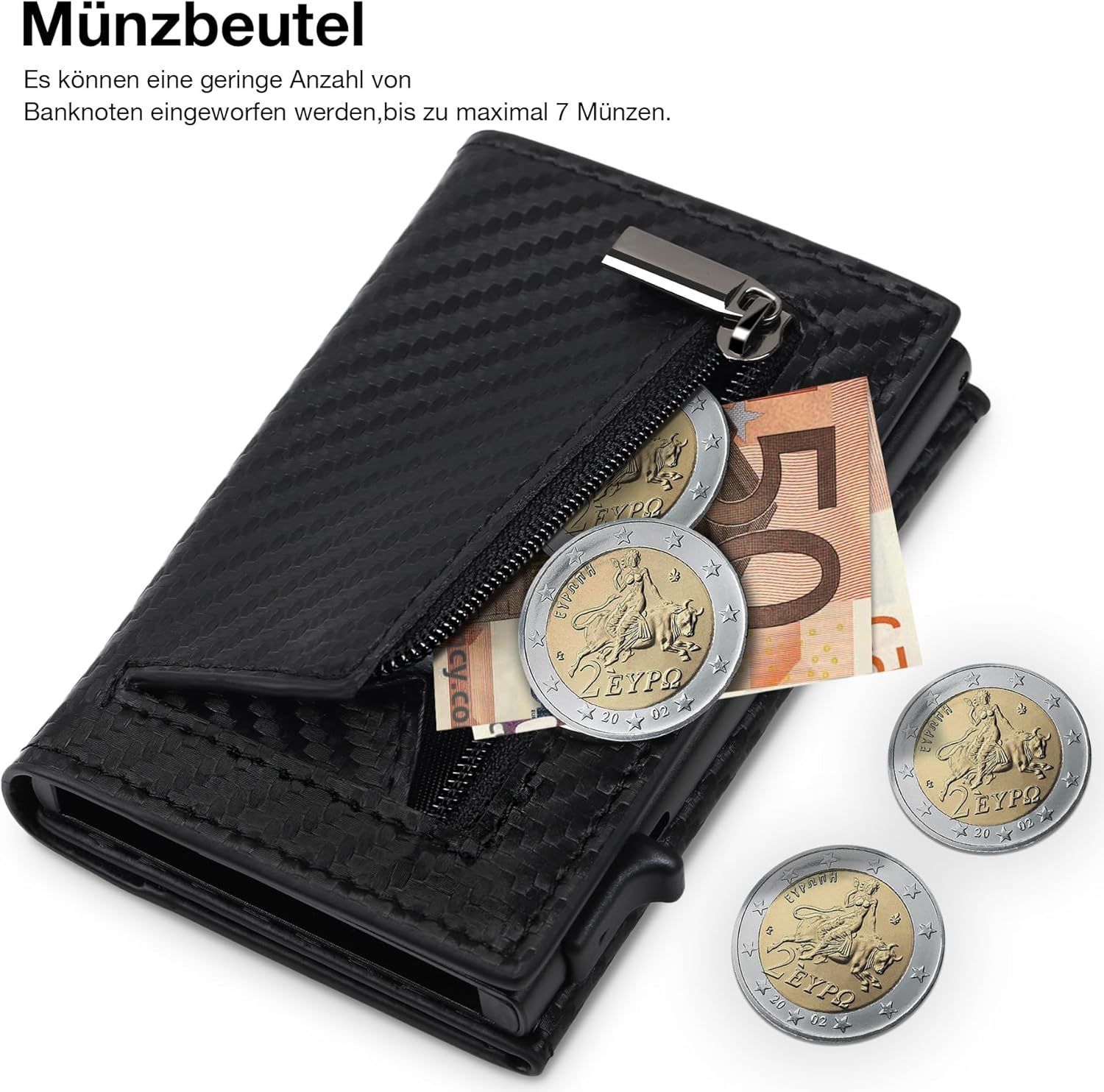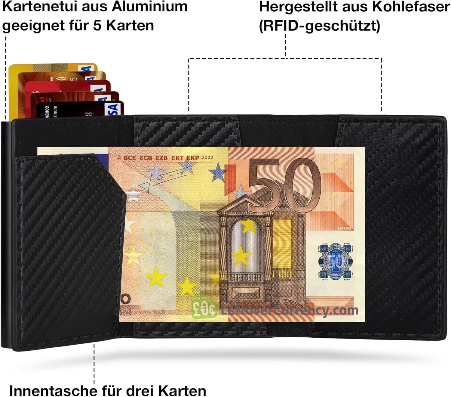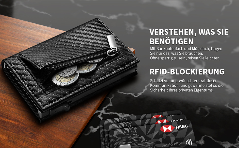 Personalizada RFID antirrobo caja de tarjetas metálicas multifuncional triple plegable con bolsa de tarjetas de cambio monedero de cuero de hombre ultra delgado