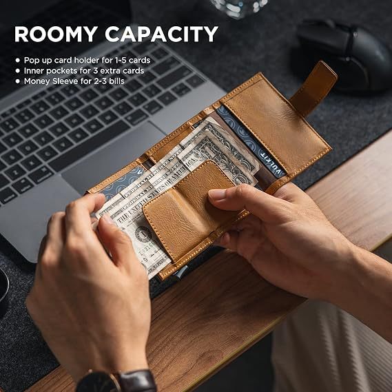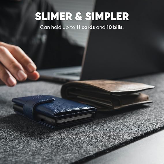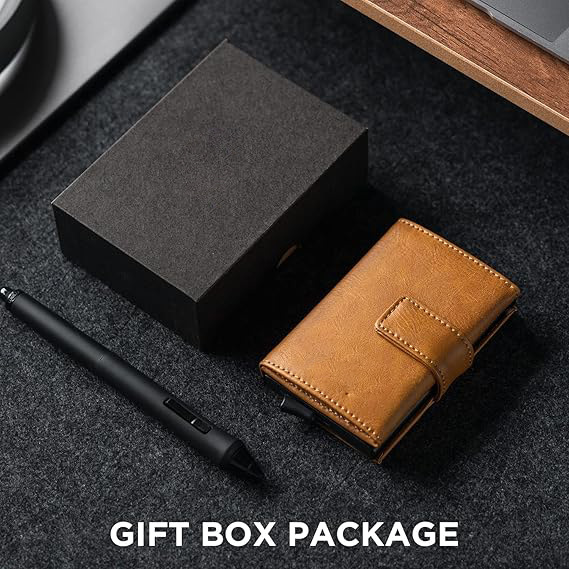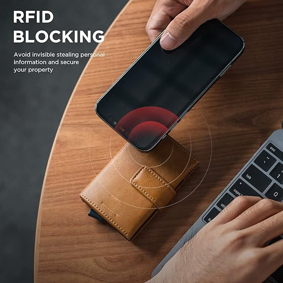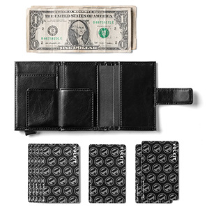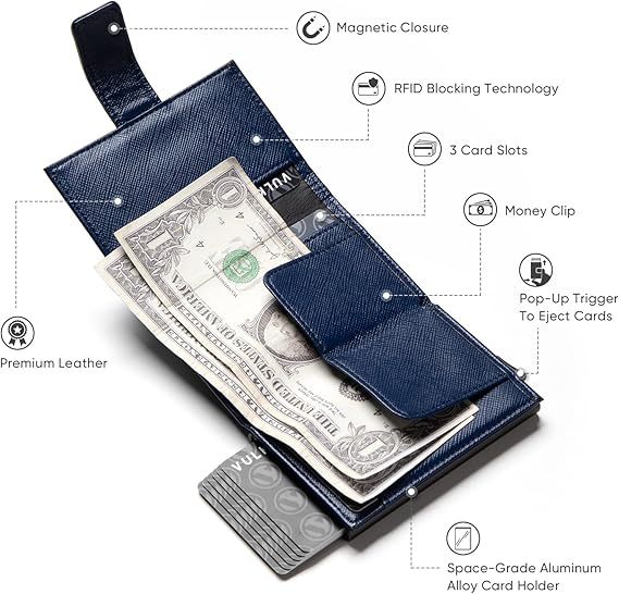 Amazon personalizado tres plegado metal cuero tarjeta cubierta RFID anti-robo deslizante bolsa multi-tarjeta de negocios billetera de cuero