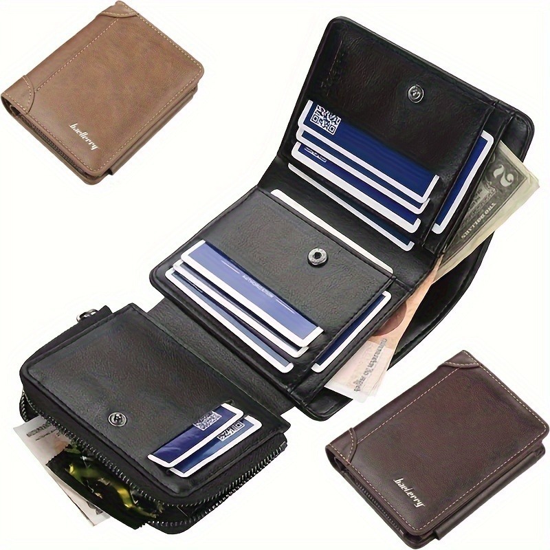 Amazon multi-tarjeta cartera de tres plegables para hombres cepillo de cremallera bolsa de cambio de negocios cartera de cuero para hombres