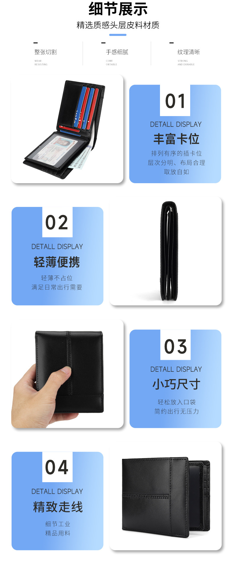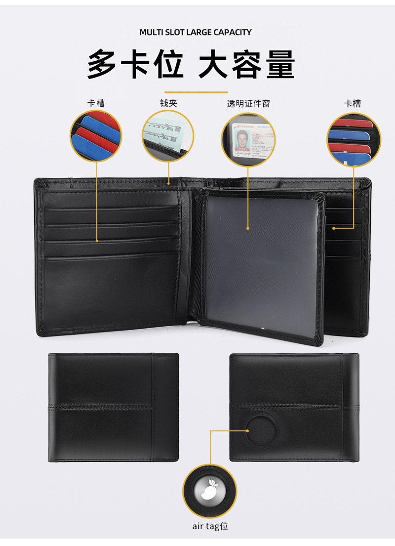 Cartera de cuero triple plegable multi-tarjeta multifuncional airtag cartera RFID cepillo antirrobo cross-border mejor vendida cartera de hombres