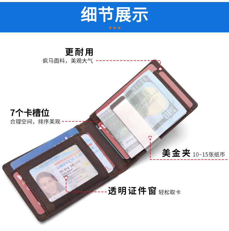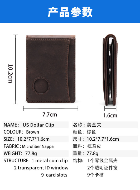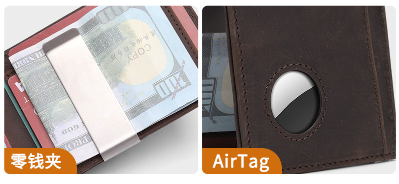 Amazon Crazy Horse Piel Cartera para hombre Airtag Cartera de cuero con cepillo antirrobo RFID para múltiples tarjetas