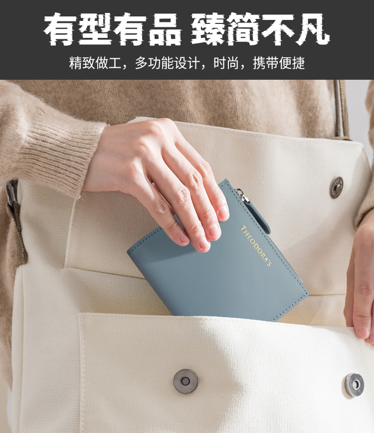 Amazon estilo japonés Napa billetera de cuero multifuncional mini bolsa de cambio ultra delgada cepillo RFID anti-robo billetera de damas