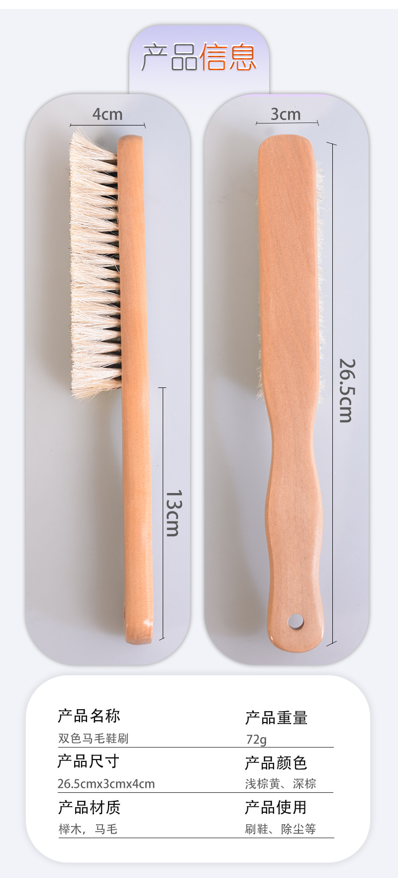 | Color | 26.5CM cepillo de caballo de dos colores |