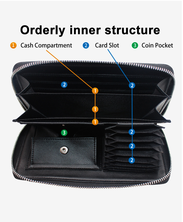 Comercio exterior Lotte estilo japonés bolso de tela larga bolso de cuero de negocios para hombres bolso de cremallera de órgano multifuncional portátil