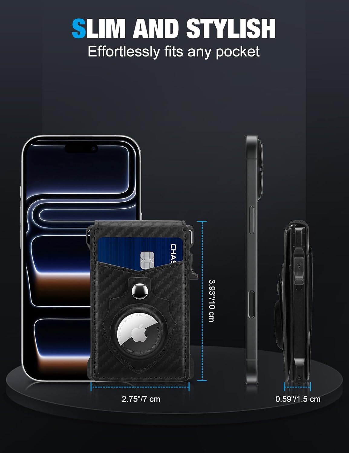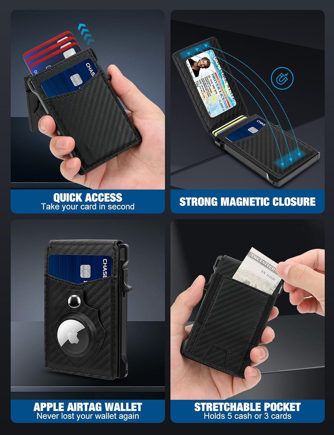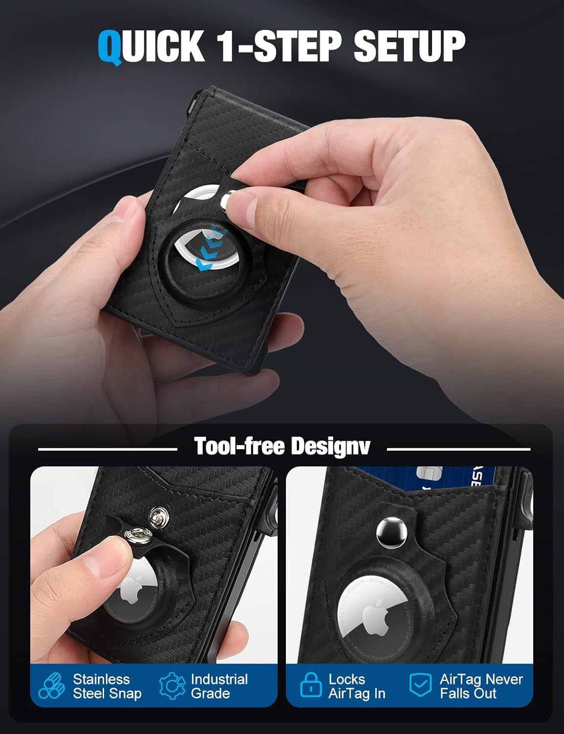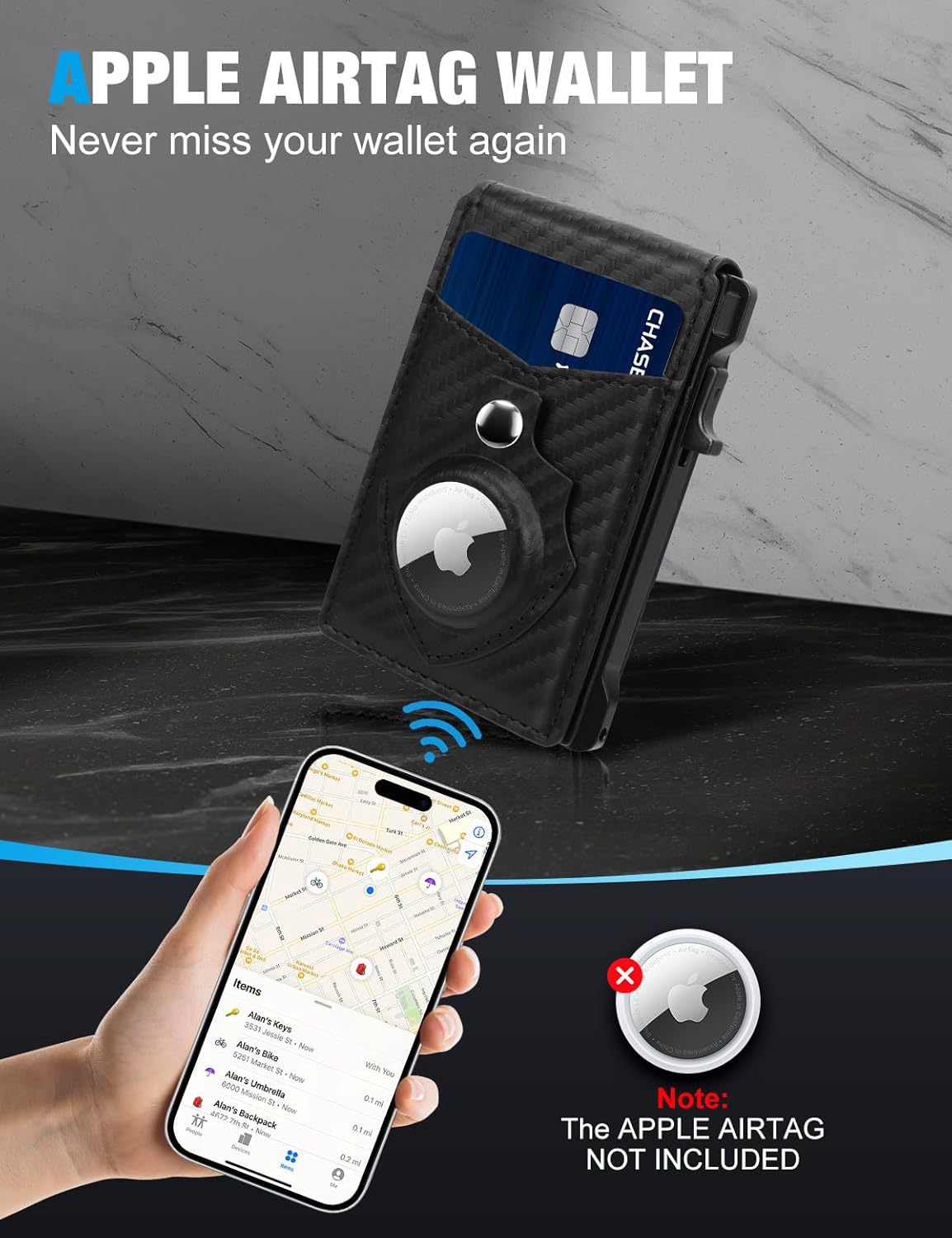 Amazon Doble tapa doble caja de tarjetas de metal con AirTag bit bolso de tarjetas antirrobo multifuncional bolso de cuero para hombres