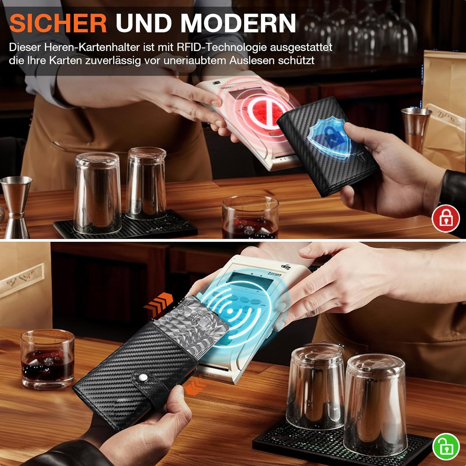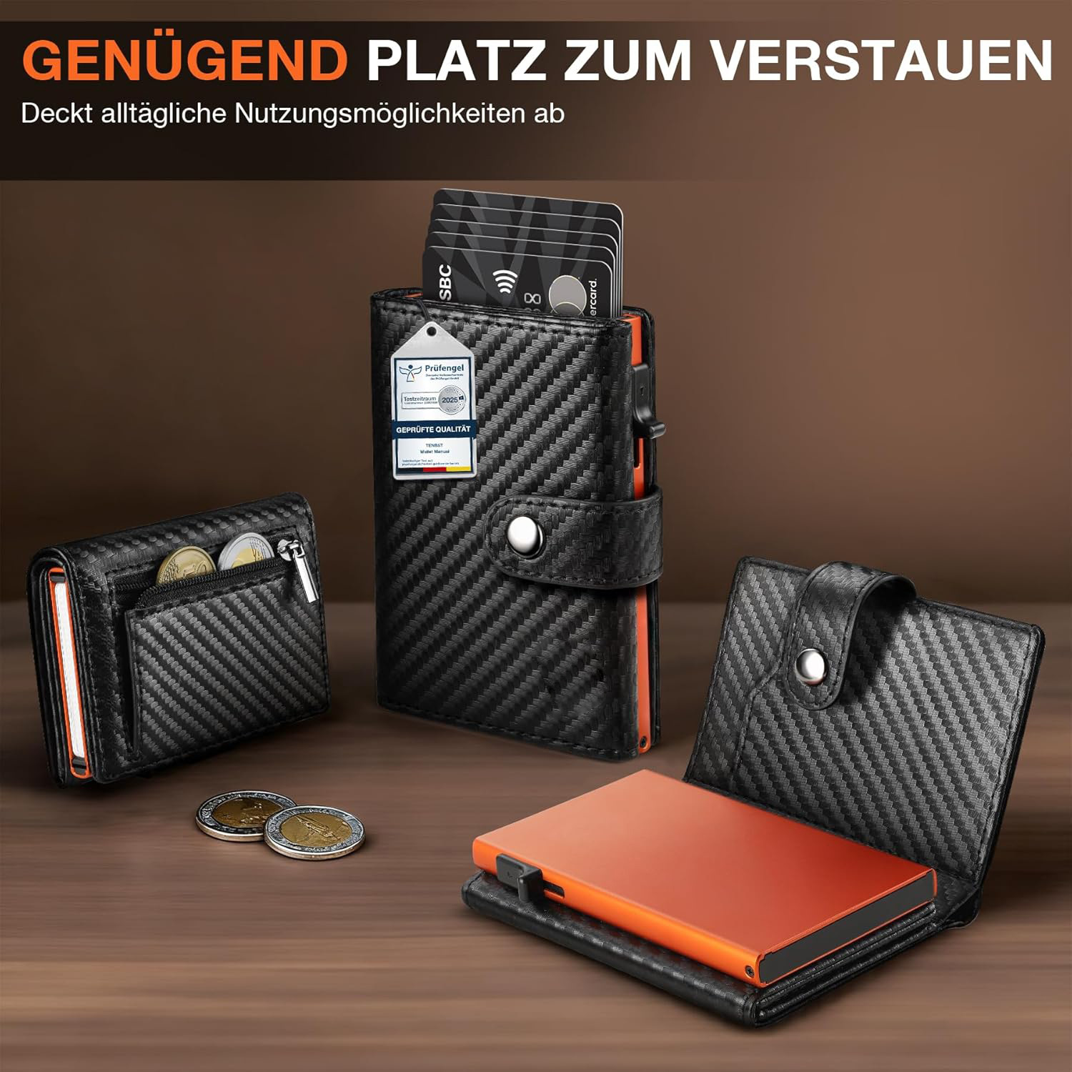 Amazon RFID antirrobo cepillo de aleación de aluminio bolsa de tarjetas pop-up triple plegable caja de tarjetas universal con bolso de cambio bolso de hombre